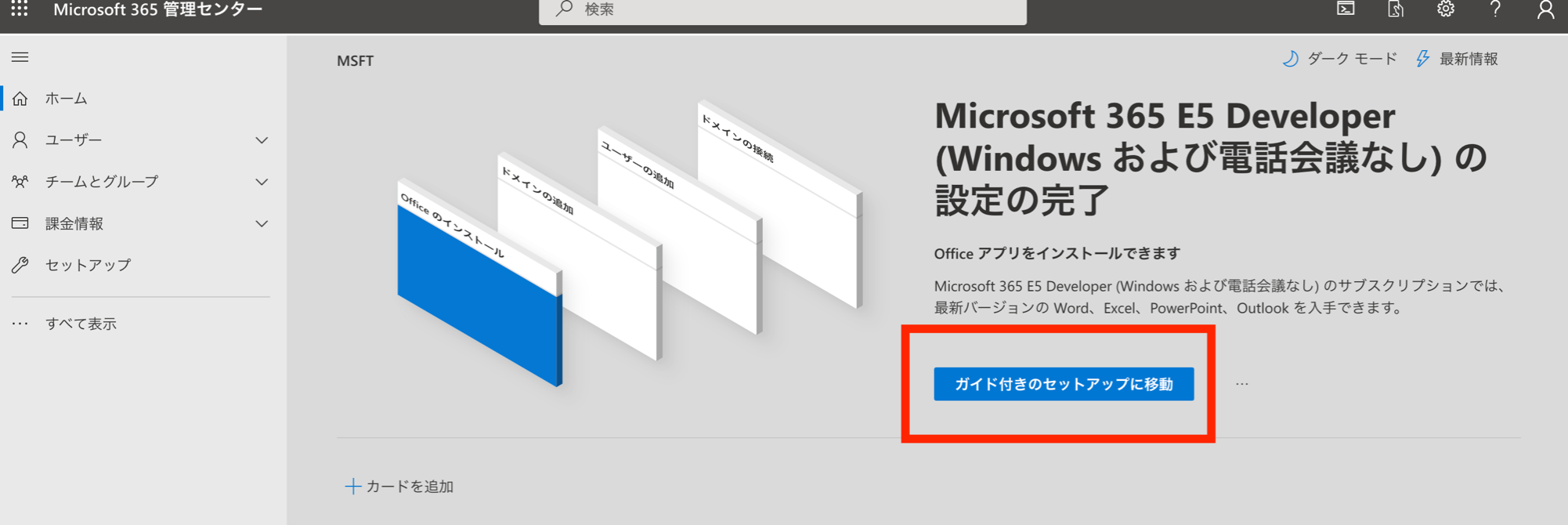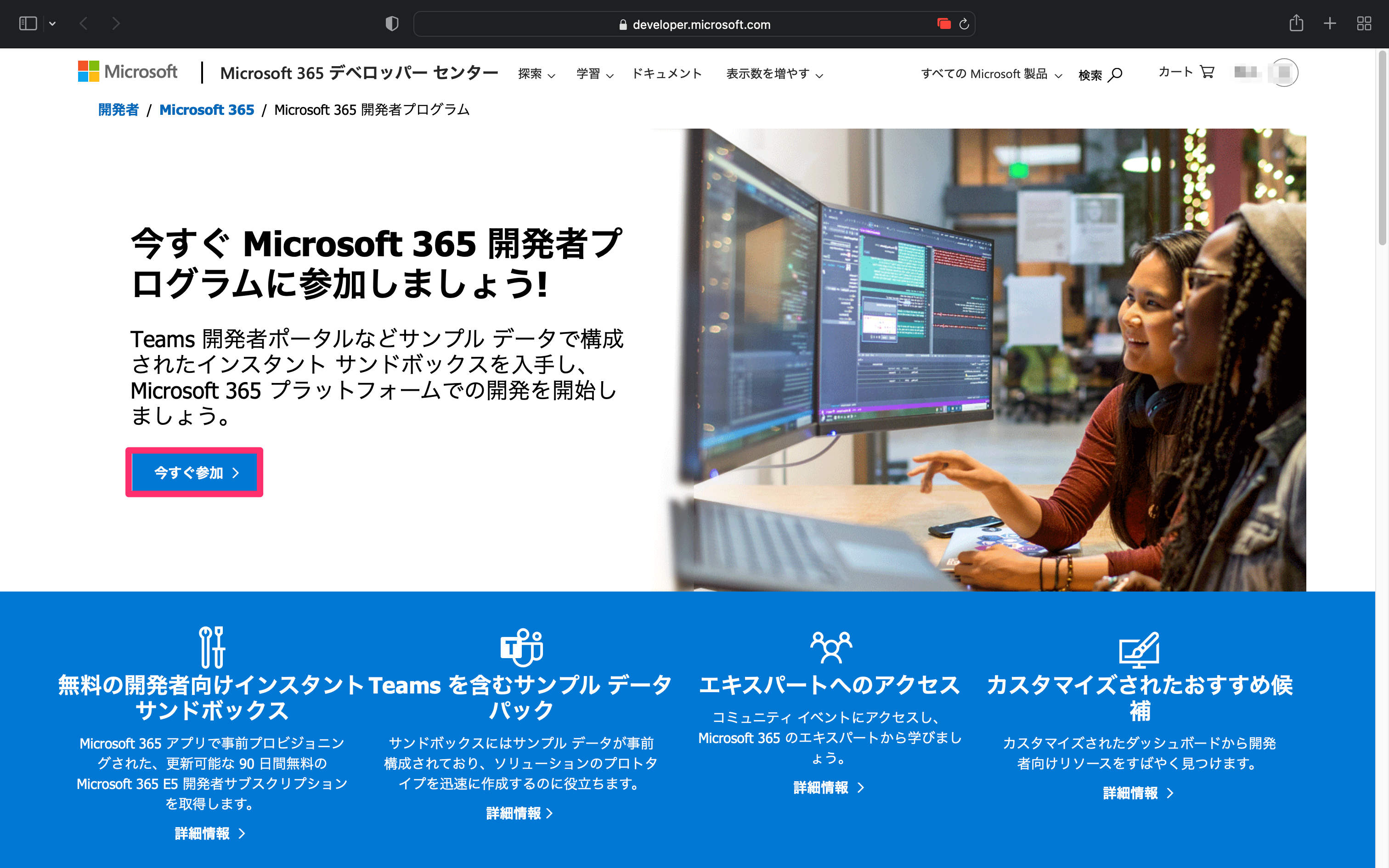 開発者プログラムはMicrosoft365の検証やテストを行える環境を提供するプログラムです。