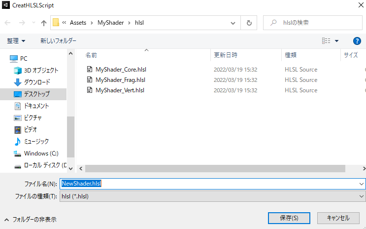 名前を変更して拡張子をhlslに書き換えれば完成!
