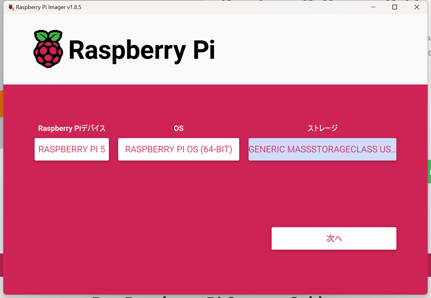 マニュアルにあるRaspberry Pi Imagerを起動