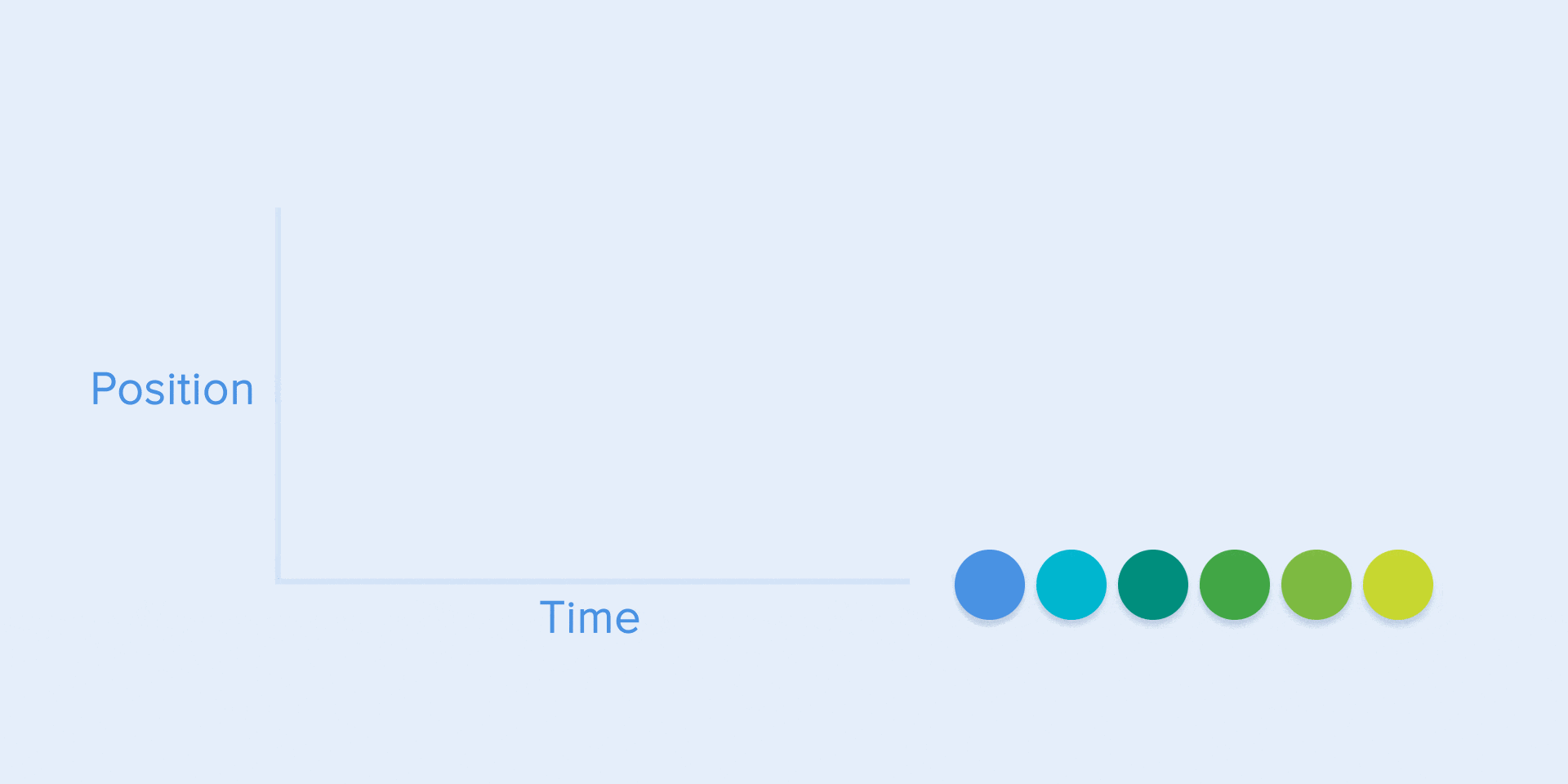 アニメーション曲線は、気分を正しく表現するのに役立ちます。下記の例では、移動時間とすべてのオブジェクトの距離が同じですが、曲線のわずかな変化でもアニメーションの雰囲気に影響を与える可能性があります。