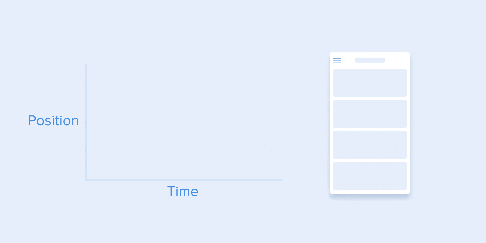 要素が位置や状態を変えるときには、ユーザーにその変化を気付かせる為にアニメーションを遅くしながらも、待たせることがないような速さが必要になります。