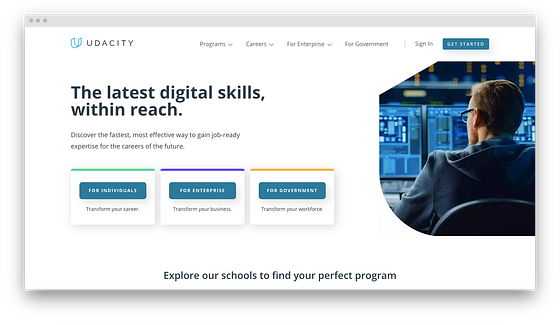 さらにUdacityは、特定のスキルやプログラミング言語のナノテク学位を提供しており、初心者が自分の興味に応じて特定の分野でキャリアをスタートできるようにしています。この学位は、Facebook、IBM、AT&Tなど業界リーダーが作っていて、新人プログラマが歩み始めた道を達成するのに役立つことで知られています。