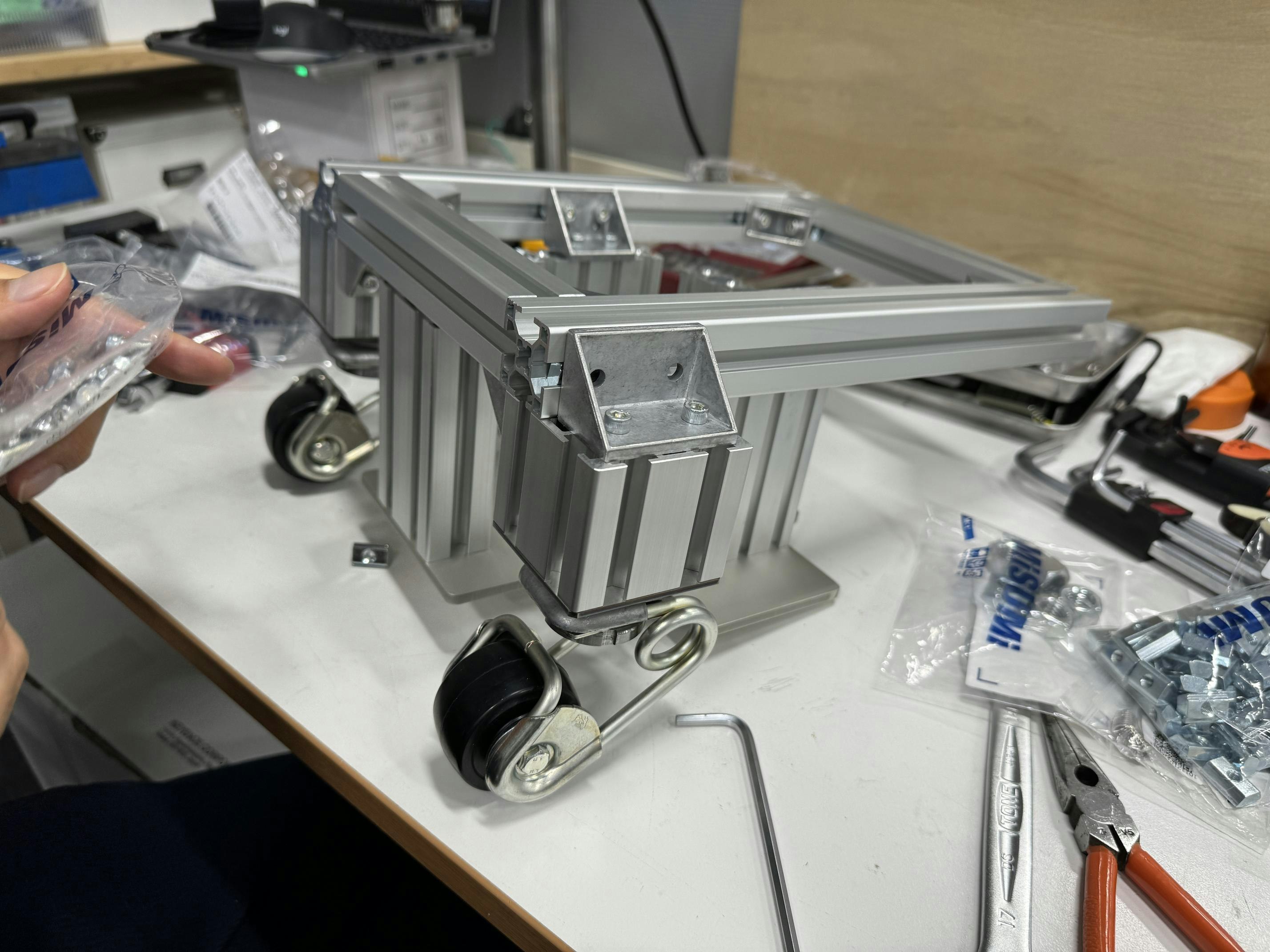 組みあがったキャスターをミスミフレーム(60×60×50.5 mm: NFS6-6060-50.5-TPW)に固定します。
