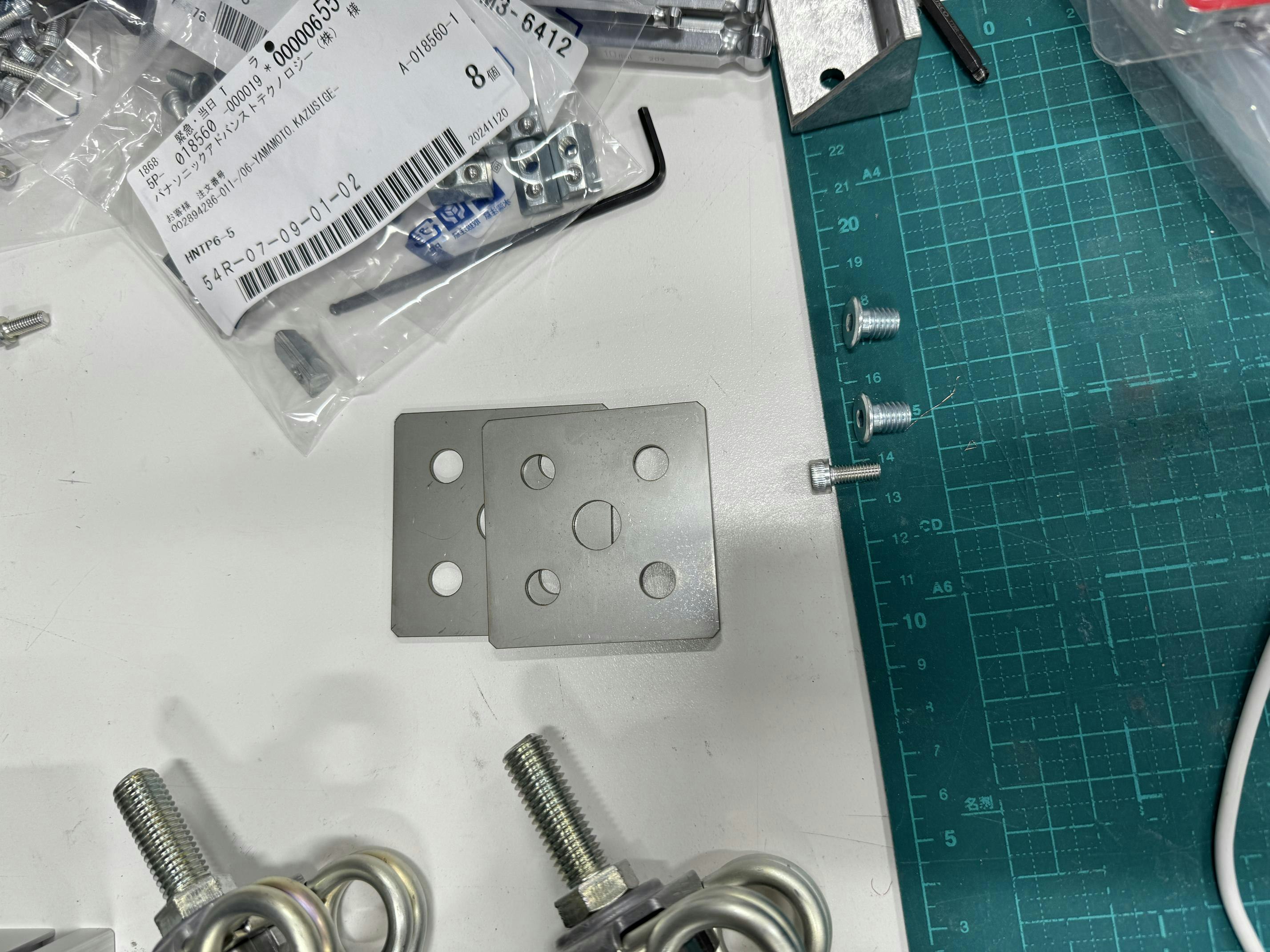 低頭ボルト(M5-10: CBSA5-10)を4個、低頭ボルト(M8-10: CBSA8-10)を2個使って固定してください。全てにねじをつけるとこんな感じです。