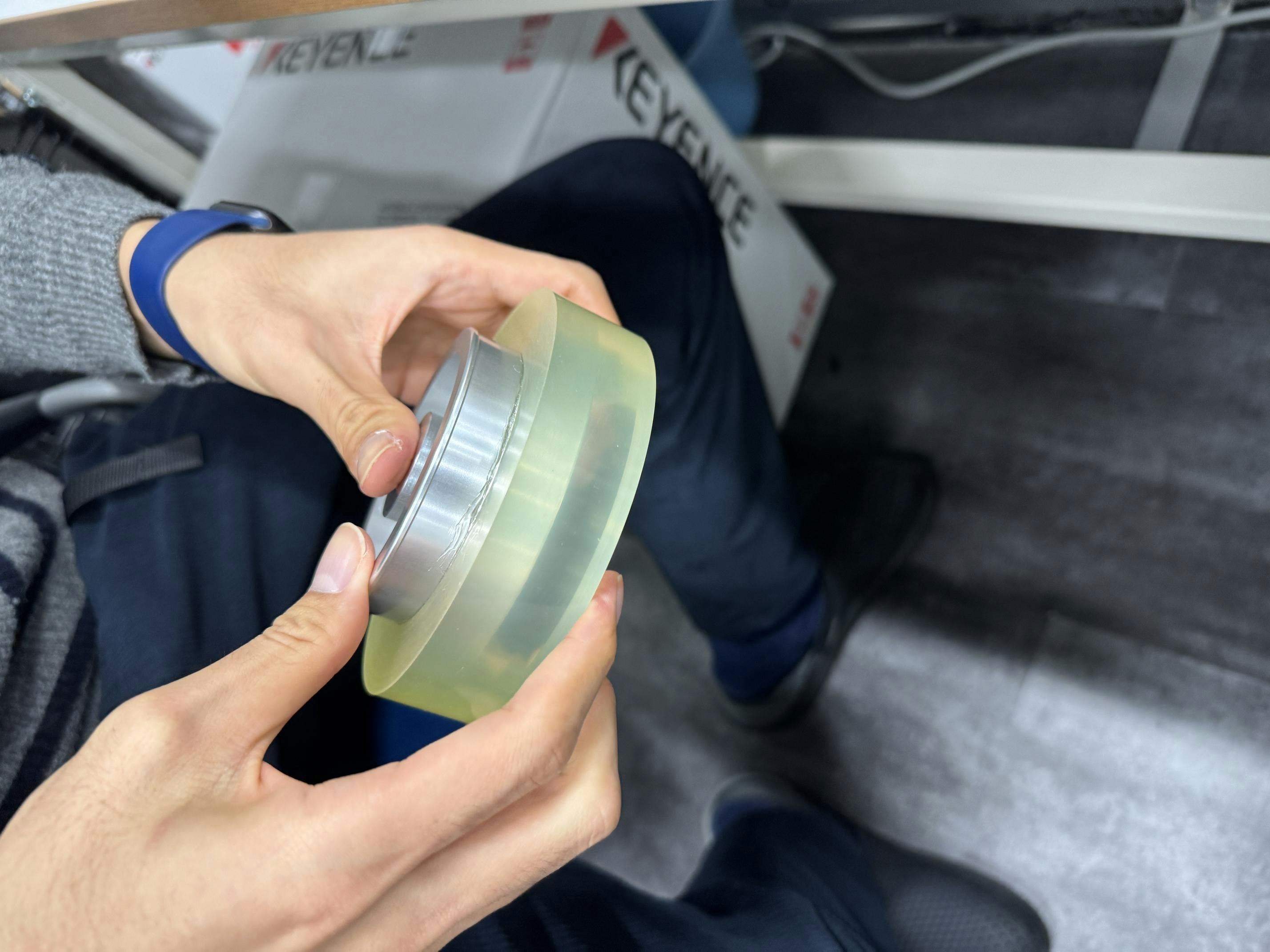 塗り終えたら、ウレタンの駆動輪(AXFM-D125-L30-V85-N)にはめ込みます。