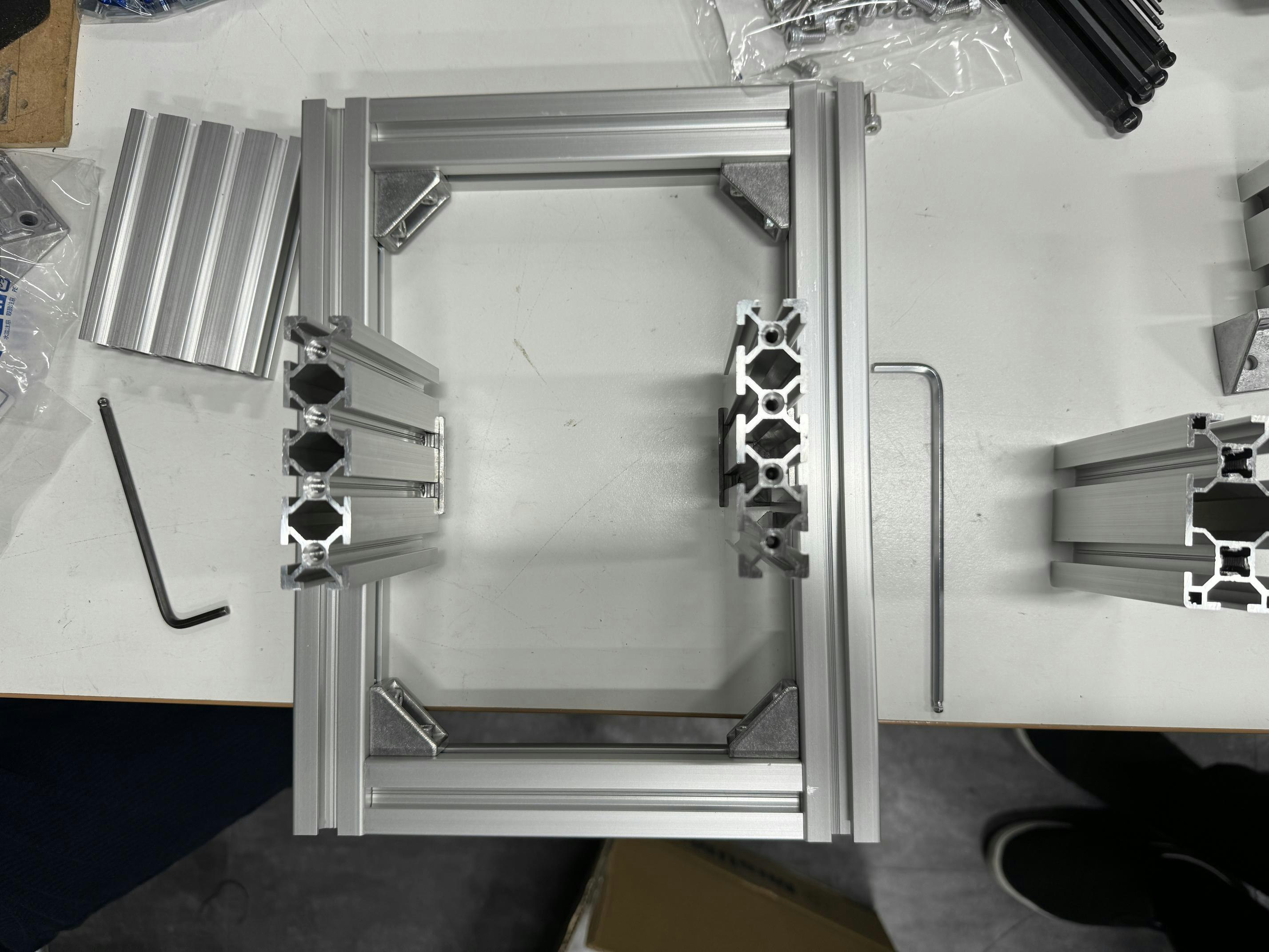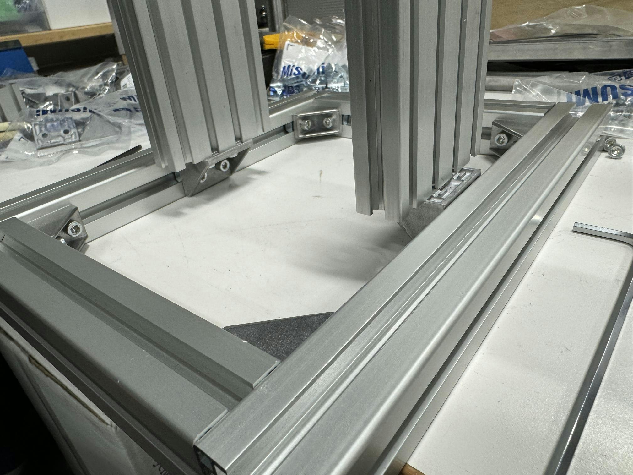 ミスミフレーム(30×30×172 mm: NFSL6-3030-172)に先ほどと同じフレームナット(HNTA6-5)を2個入れ、長方形になるようにこれらを固定します。