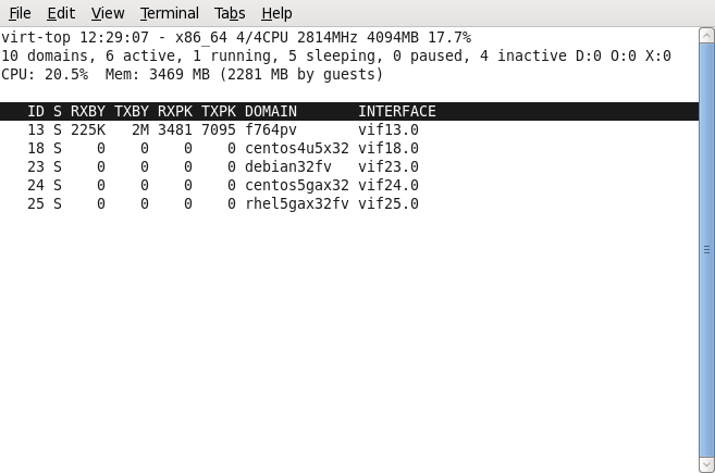 virt-top は、仮想化ドメインの統計情報を表示するための 'top(1)' に似たユーティリティ。