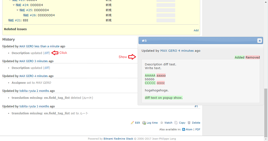 Redmine Diff Popup plugin (Redmine 4.x 動作未確認)