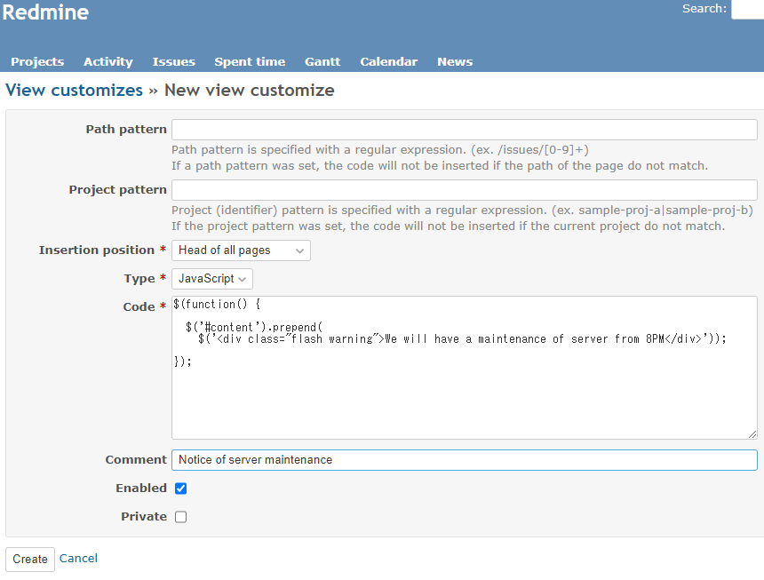 | Redmine Banner Plugin | 画面上部に通知欄を常時表示 |