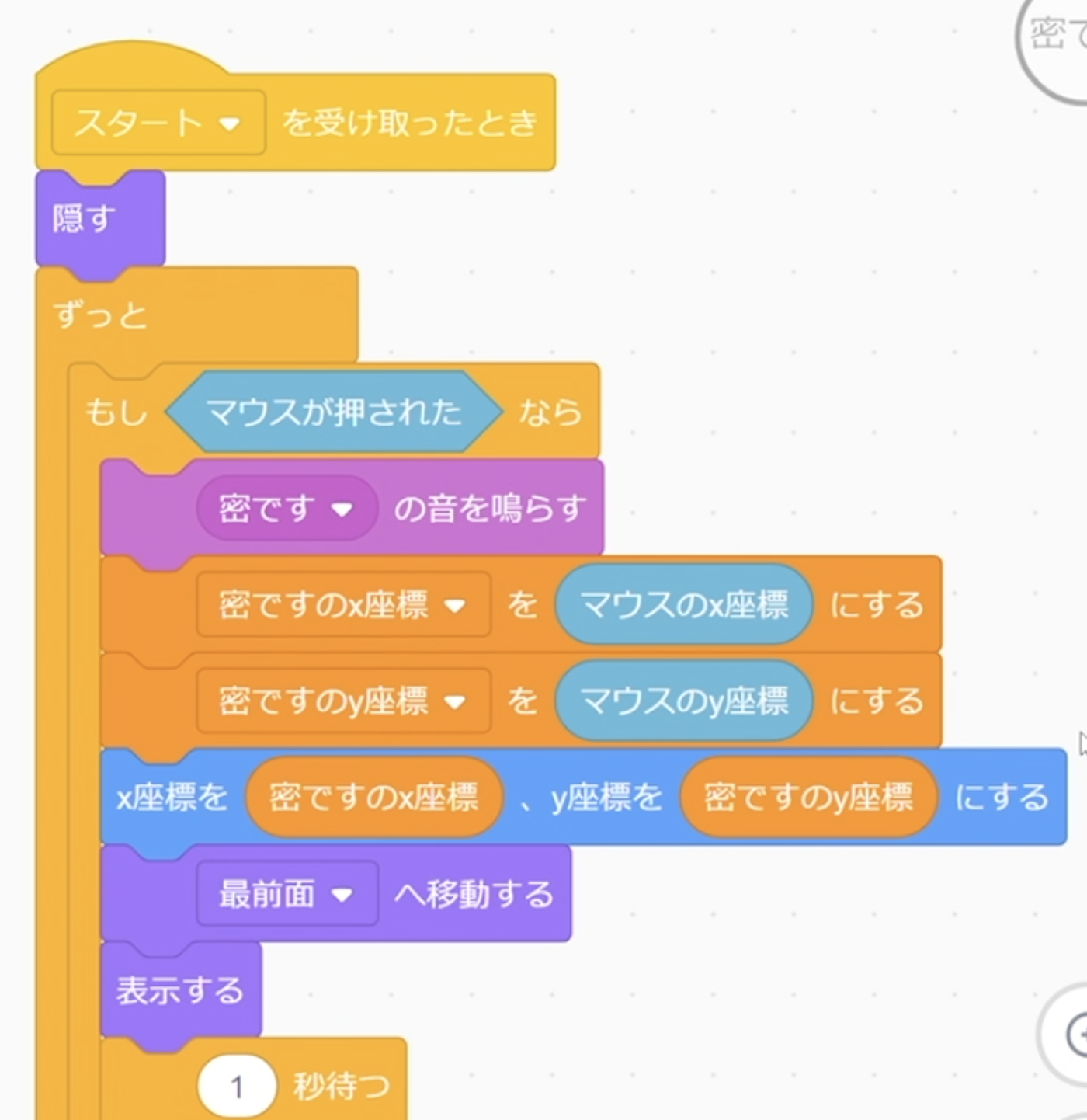 スクラッチによる密ですゲームの作り方の続きを解説していきます。