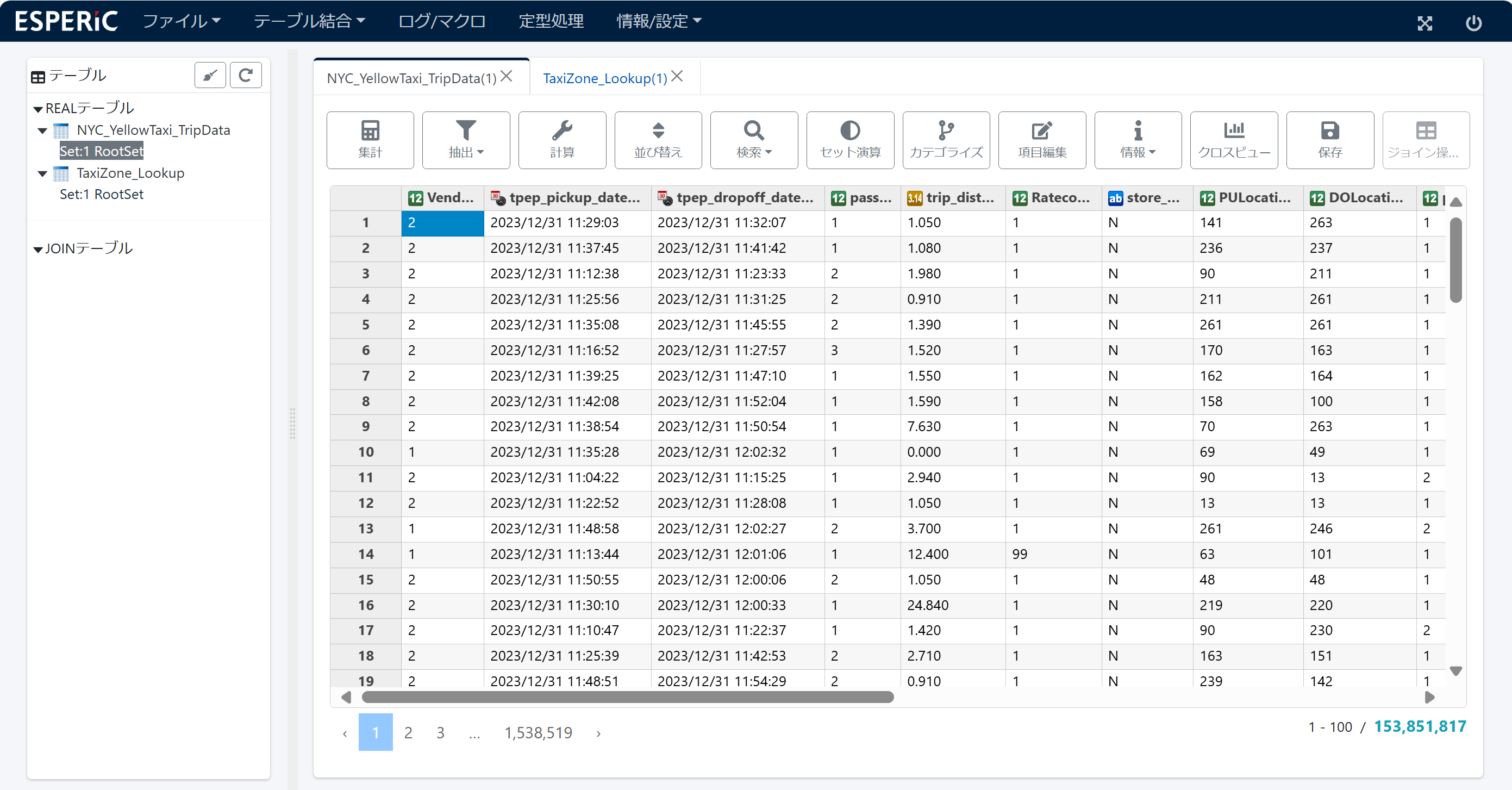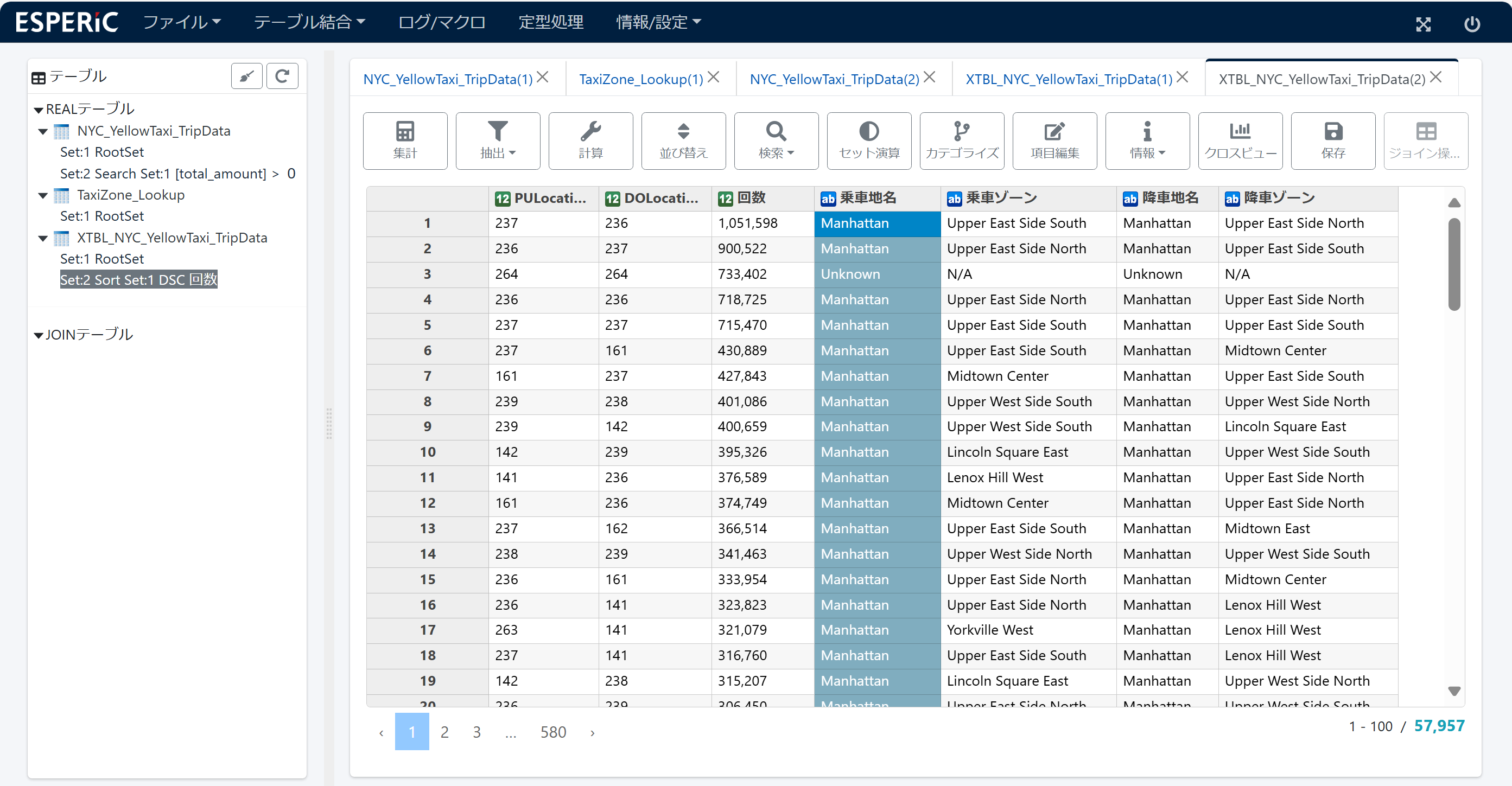 集計テーブル XTBL_NYC_YellowTaxi_TripData が作成されます。画面は 6. ソート を参照