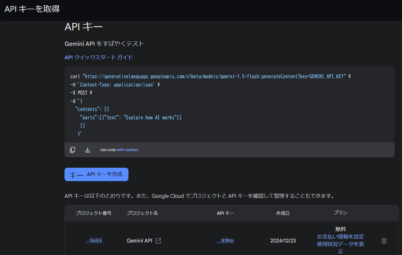 - API keyを発行してPythonから利用することもできます(後半パート)