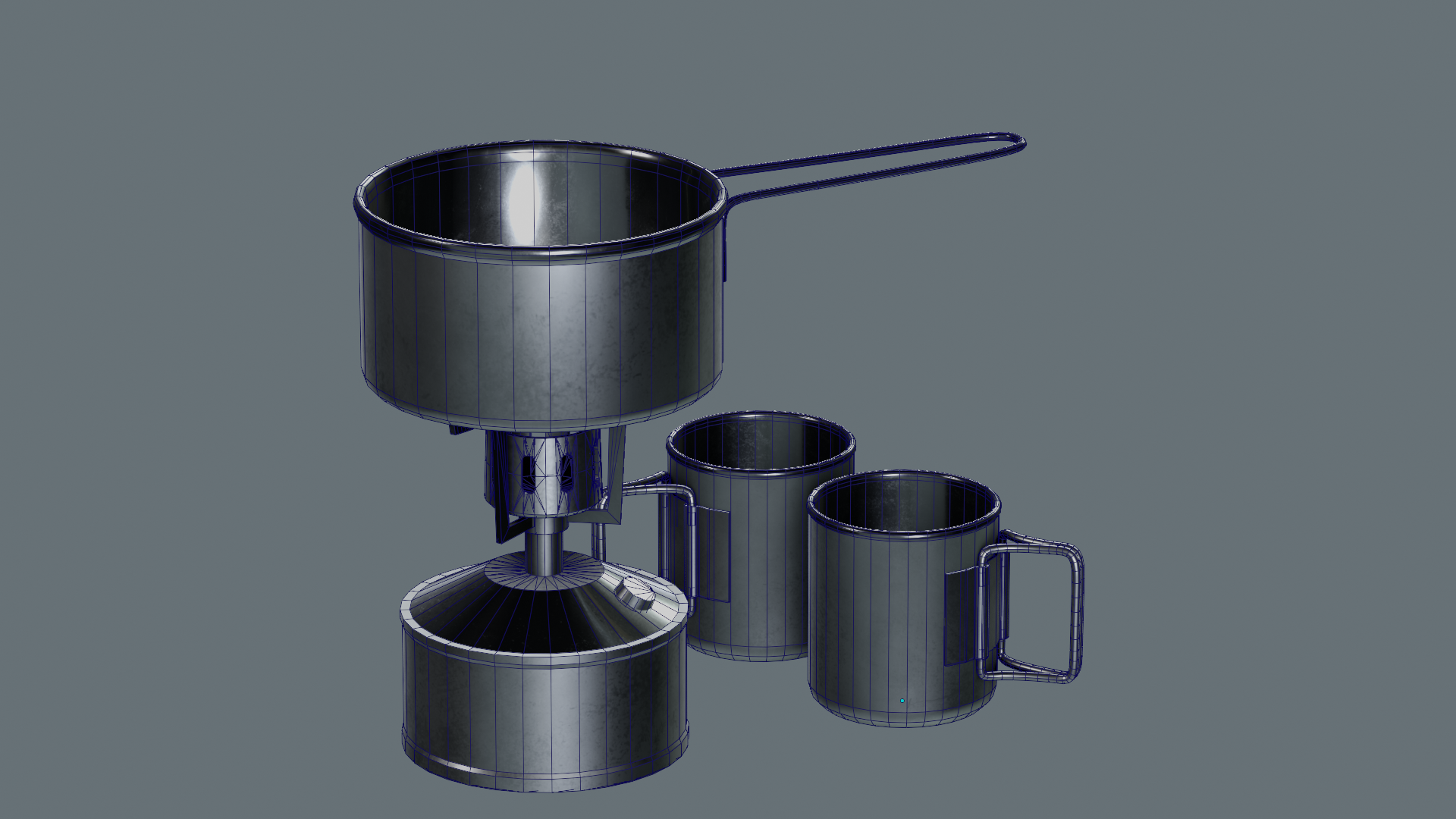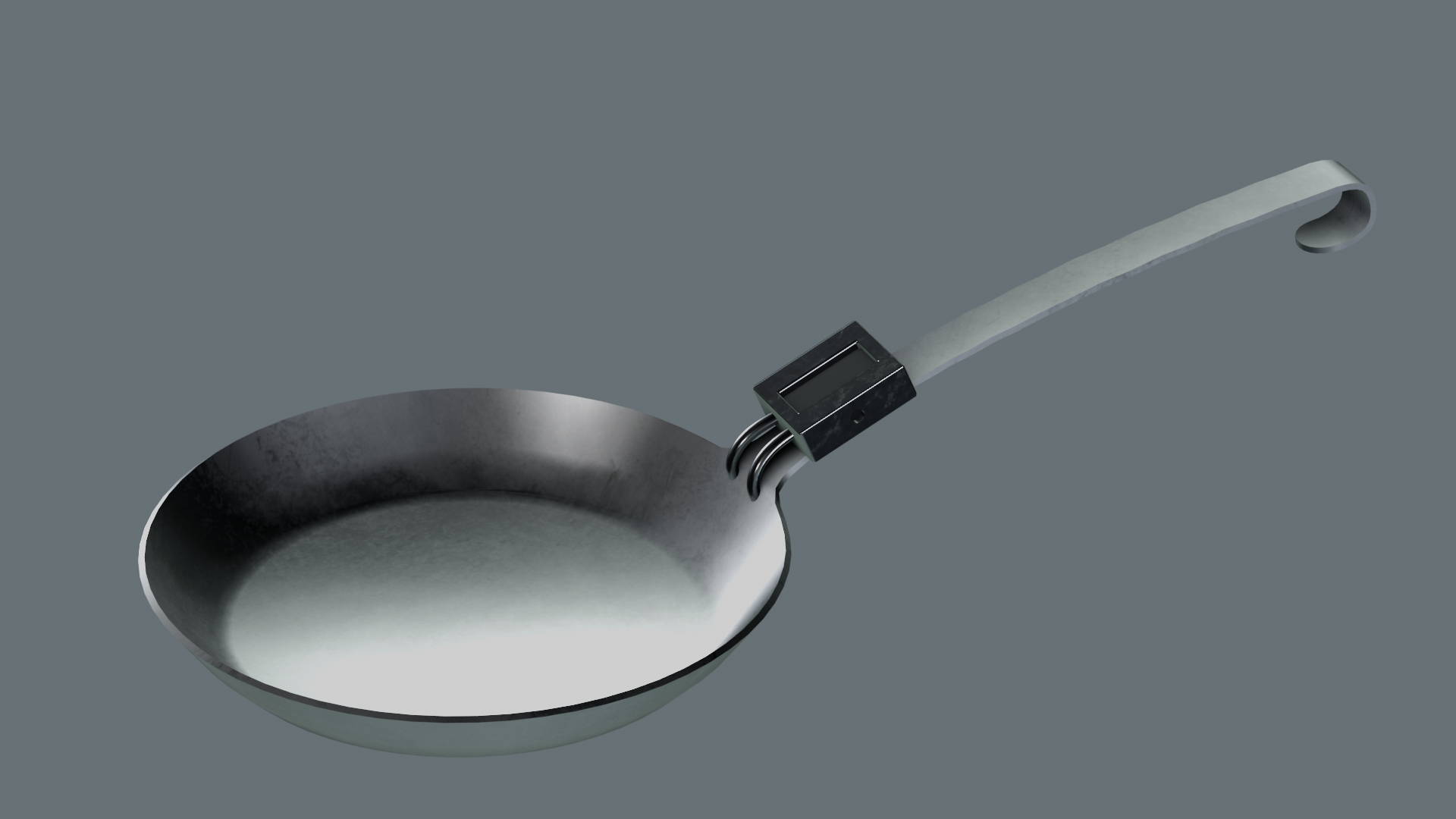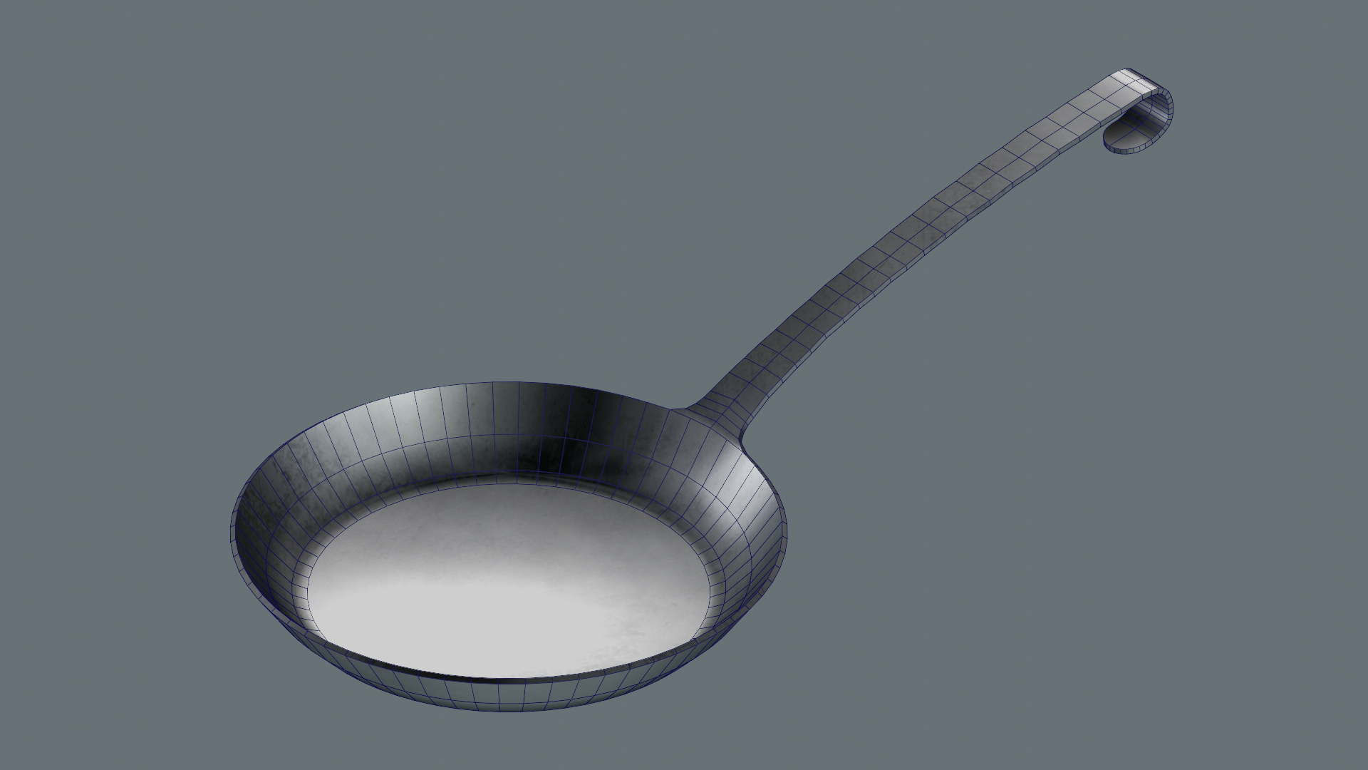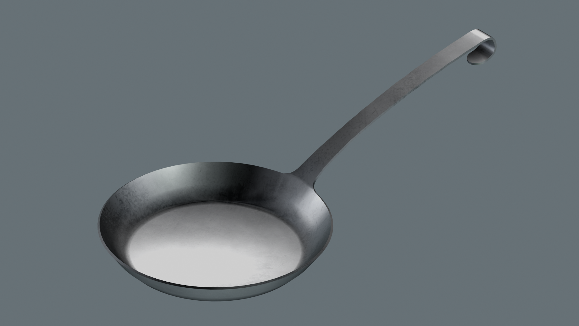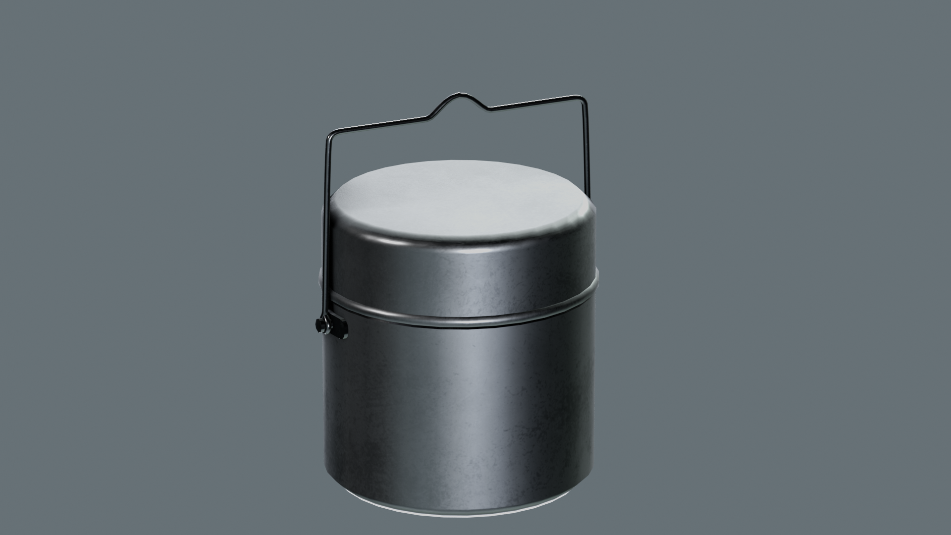 これは、全部金属でつくられてるタイプの鍋を調べて良い感じのものをモデルにしています。厨房とかにありそうなやつ。小物系は基本的に全て金属製イメージで作っていますね。