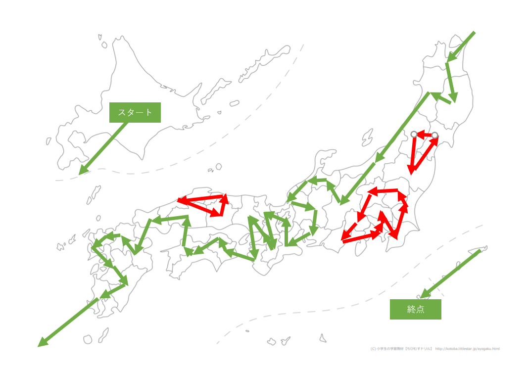 中国・四国周りは一筆書きするのが難しそうですね。