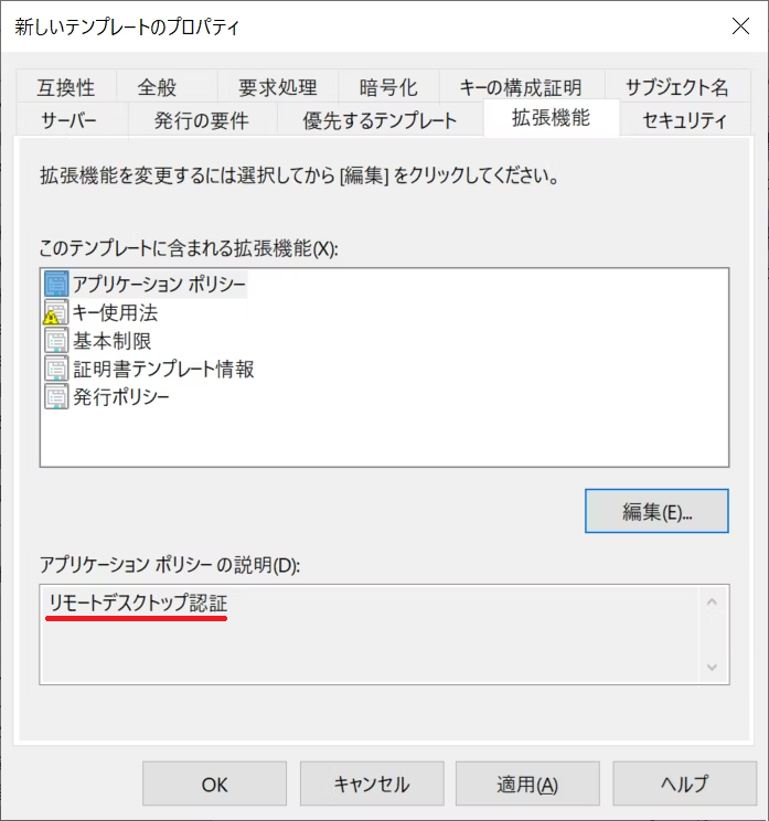 以上で リモートデスクトップ 用の証明書テンプレートが定義できました。