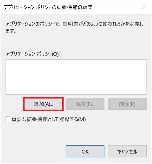 5-c. リモート デスクトップ認証のアプリケーション ポリシーを追加するために 追加 ボタンをクリックします。
