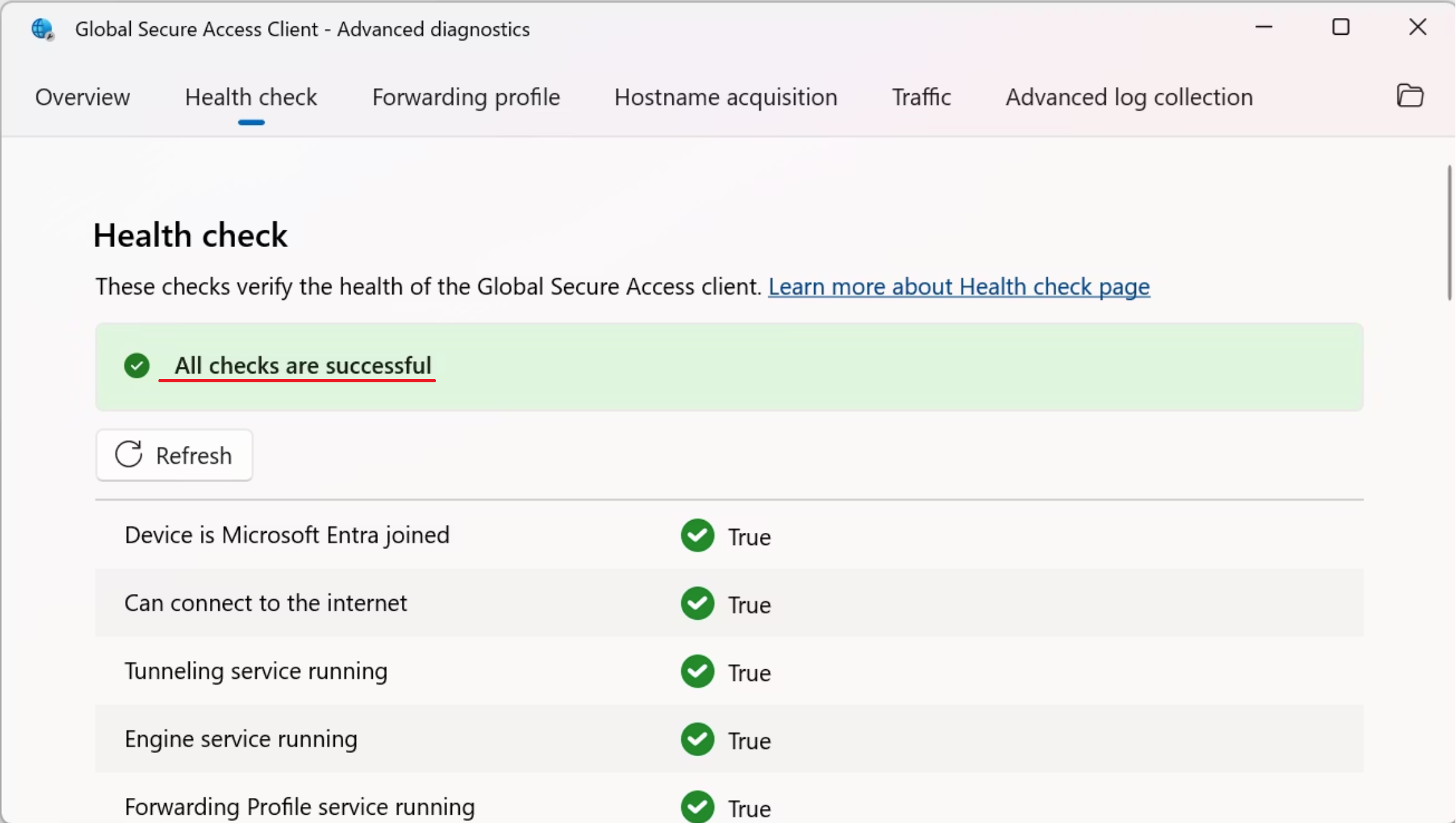 公開情報:Windows のグローバル セキュリティで保護されたアクセス クライアントのトラブルシューティング: [正常性チェック] タブ