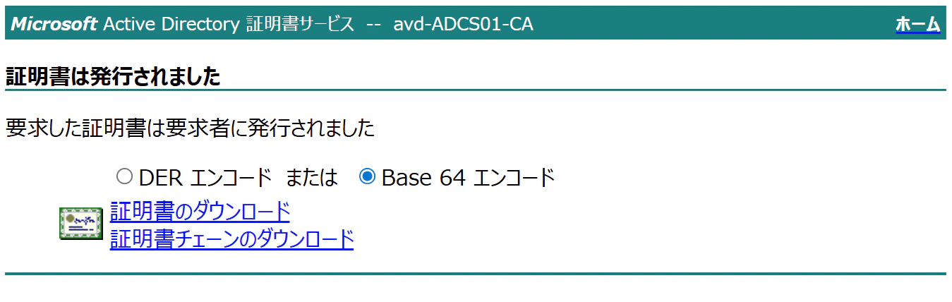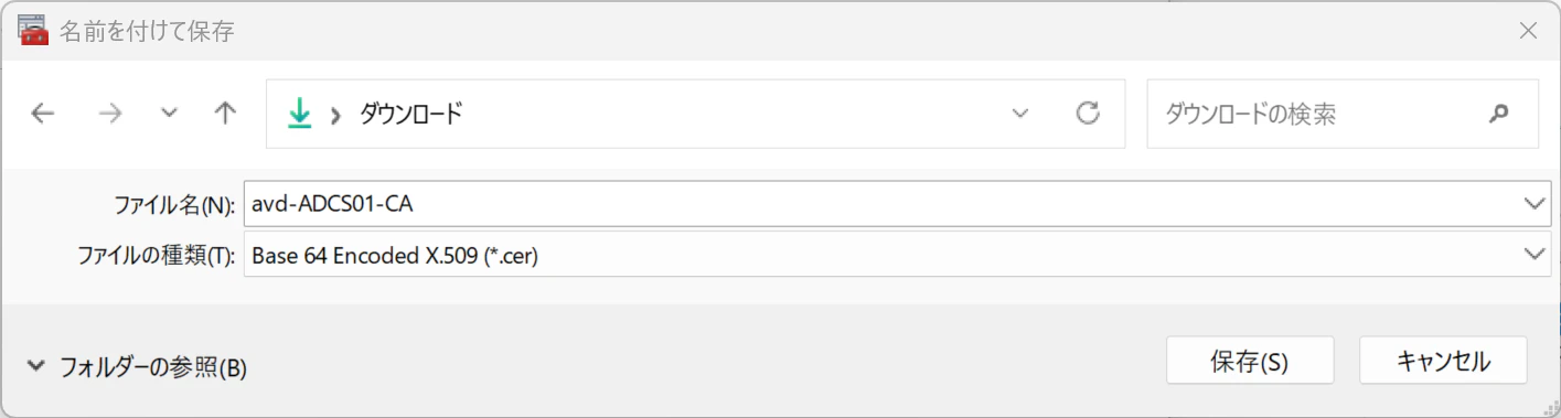 AD CS の ルート証明書 をダウンロードして、クライアントPC にインストールする手順