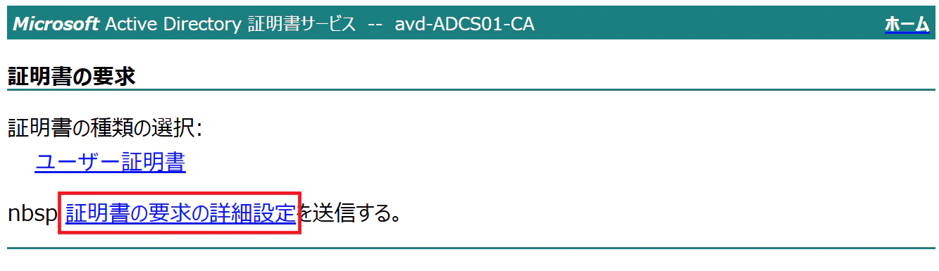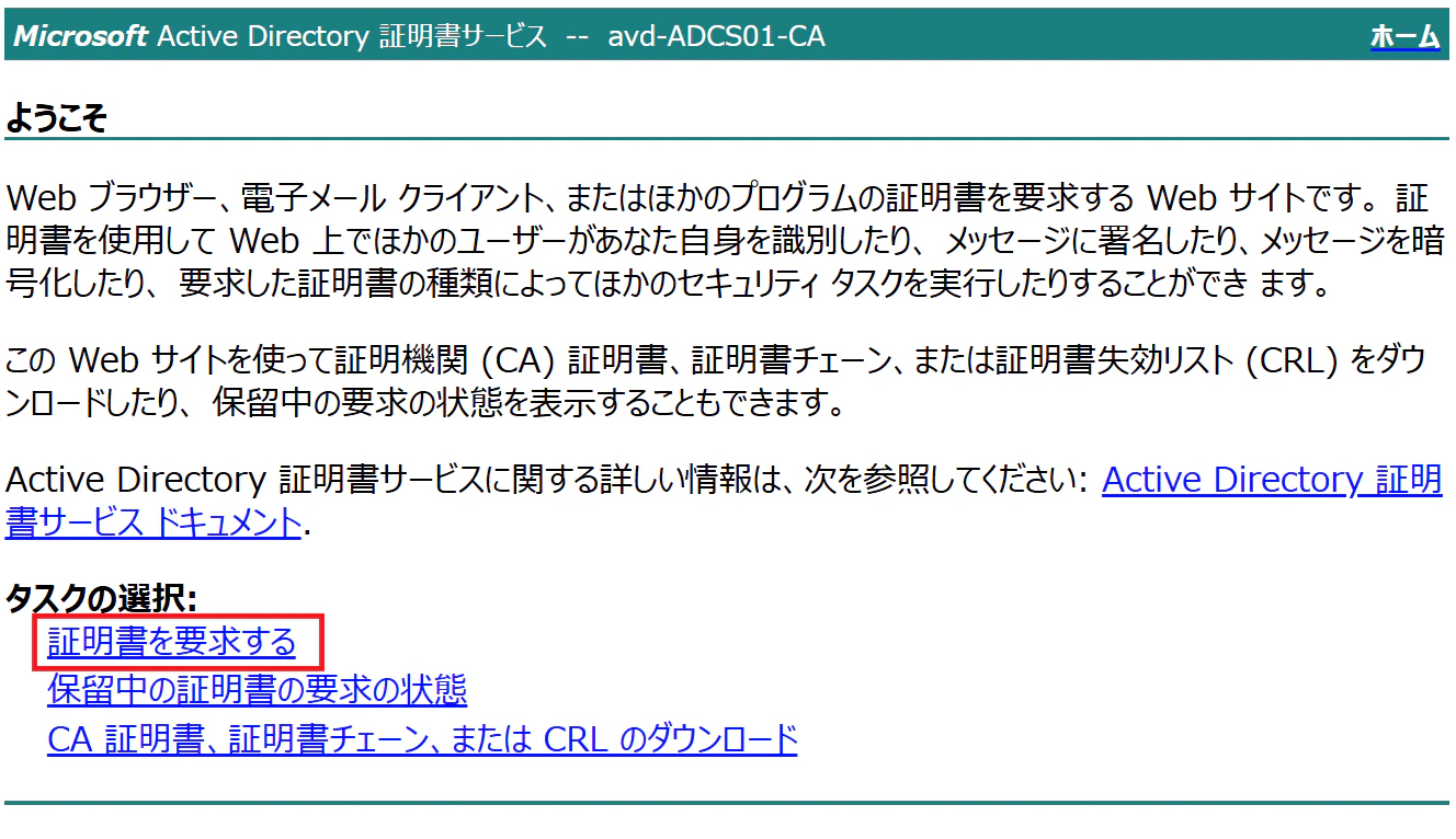 1.ブラウザで http://[ADCSサーバーのIP]/certsrv にアクセスします。