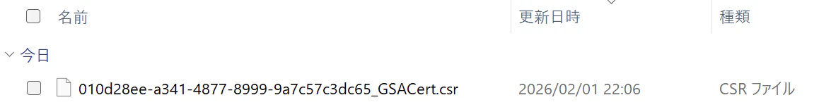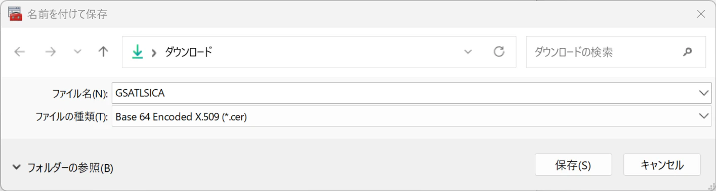 前章でダウンロードした証明書は、以下のファイル形式になっていますが、このままでは GSA にアップロードできません。GSA 側では、拡張子 (.pem) 形式である必要があります。