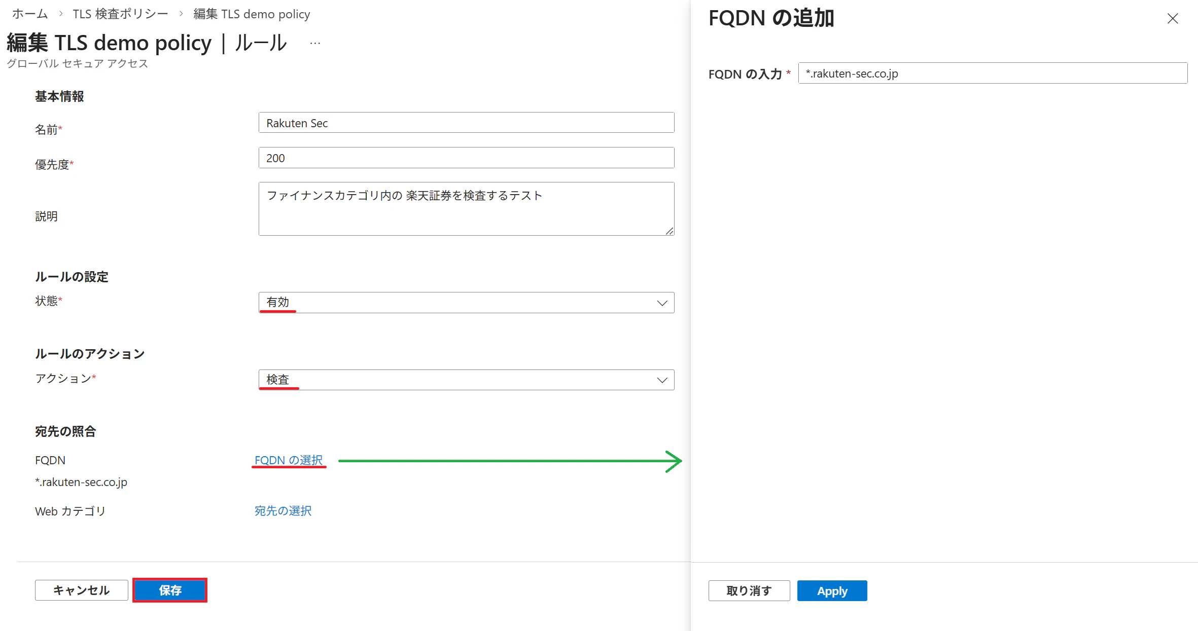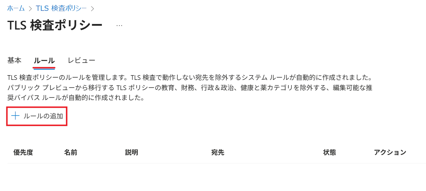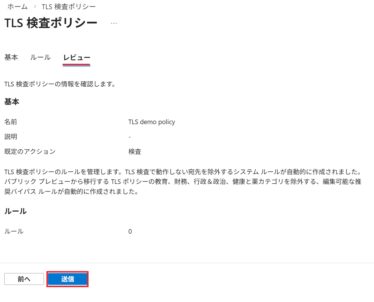 以上で、既定の設定で TLS インスペクション を実施するポリシーが作成できました。