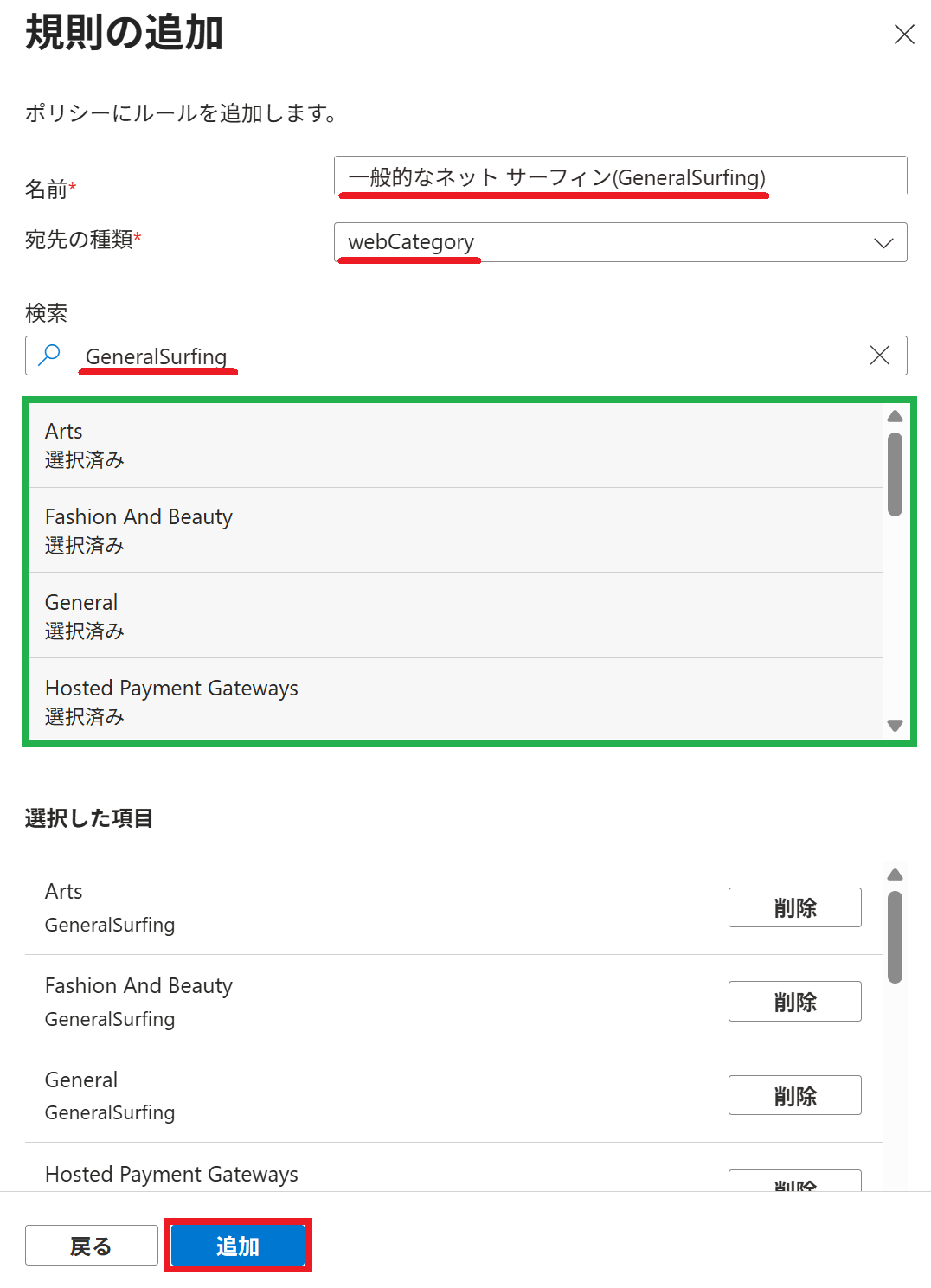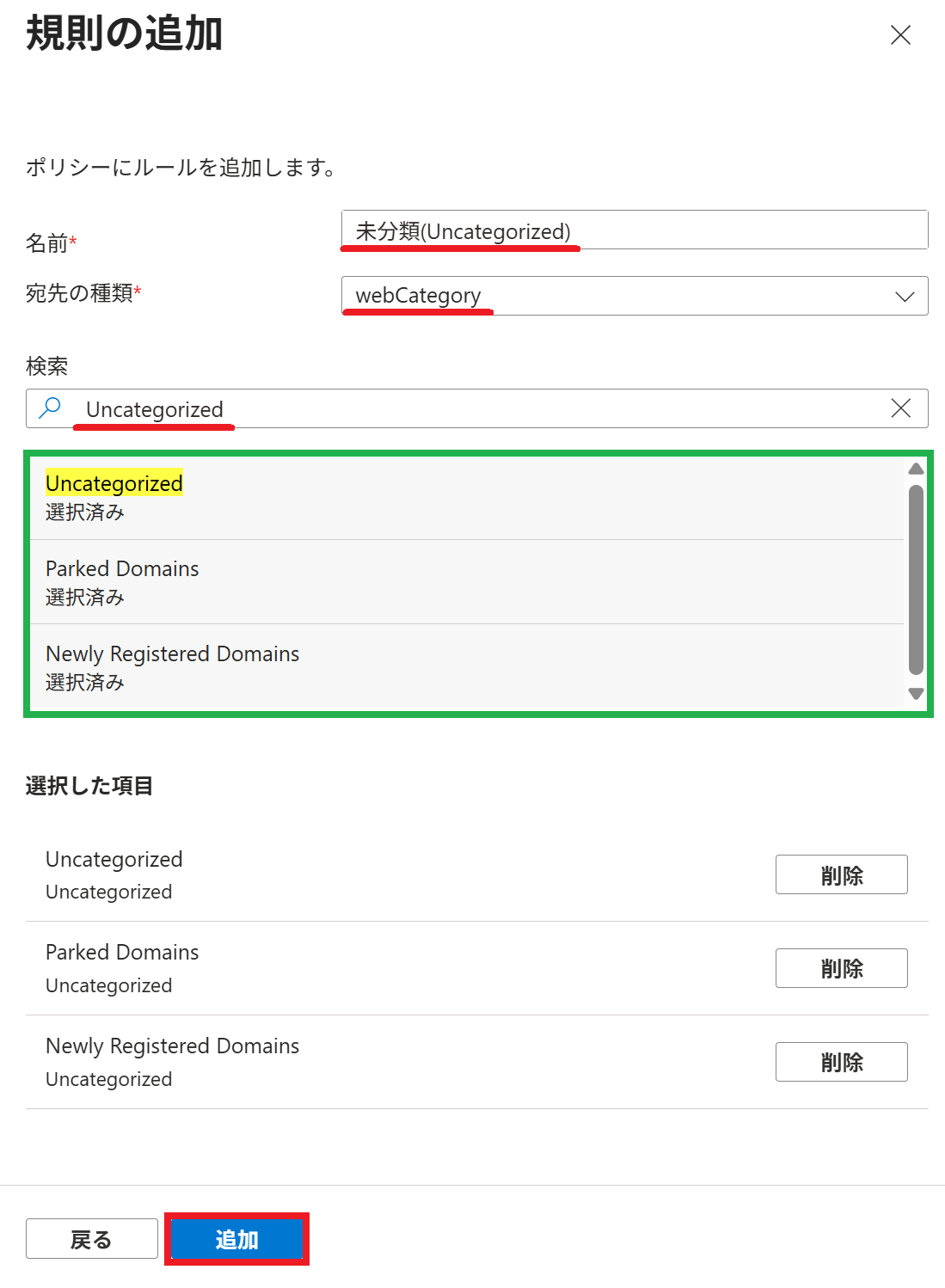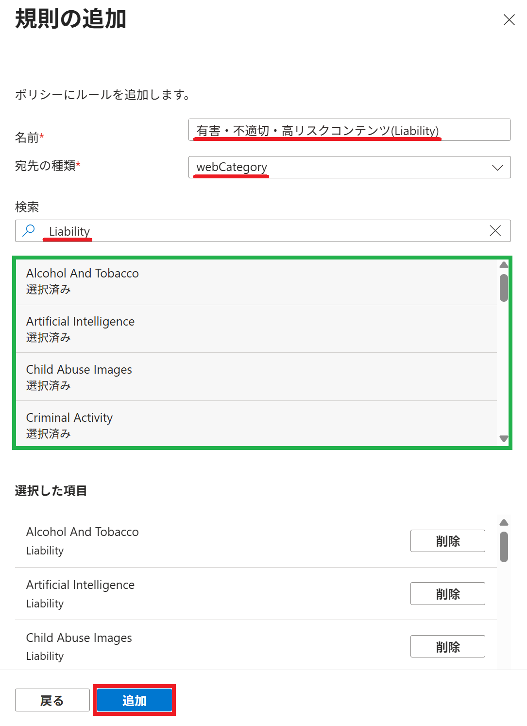 5. 一部の カテゴリ を許可したい場合