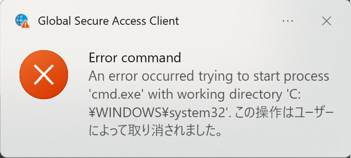 すると、UAC が発動して 管理者の認証を求められますが、キャンセルすると 以下のエラーになり Disable 化できません。管理者であれば、Disable 化することが可能です。