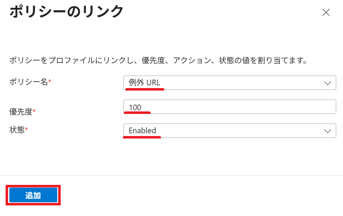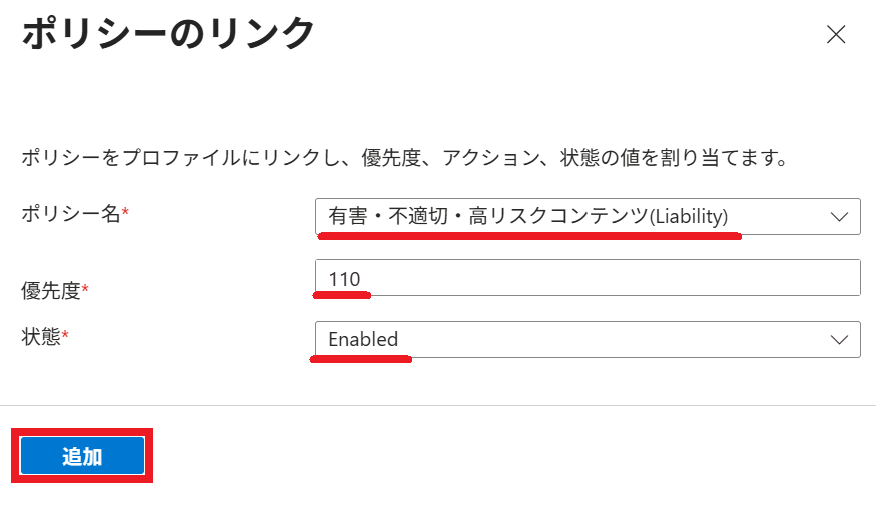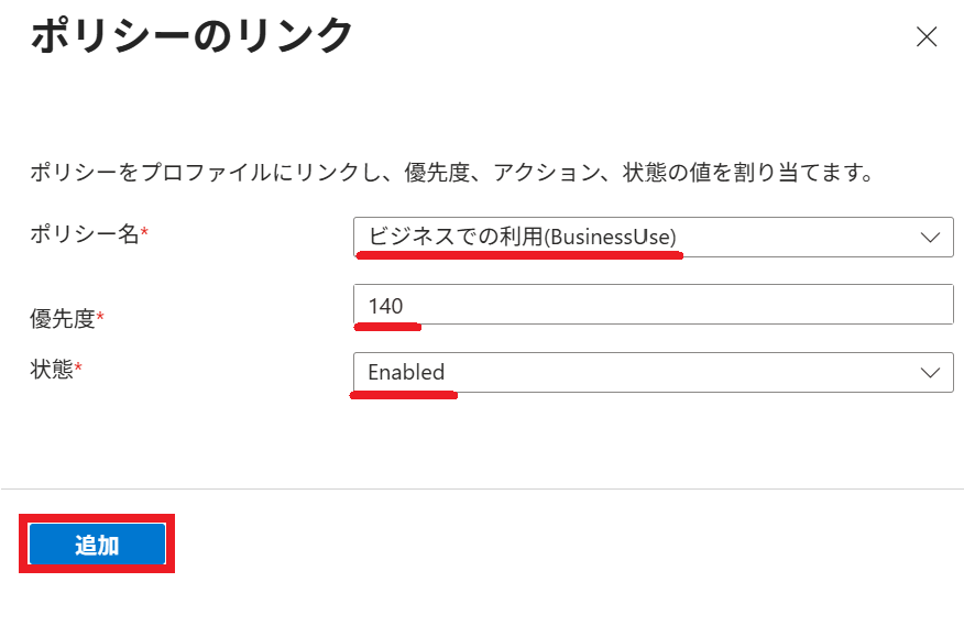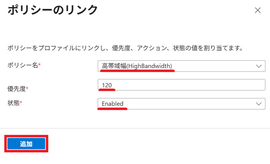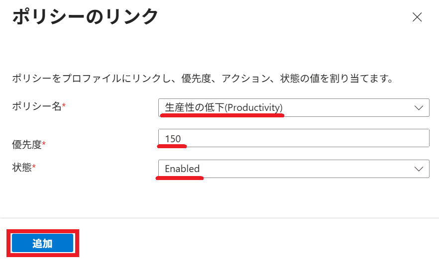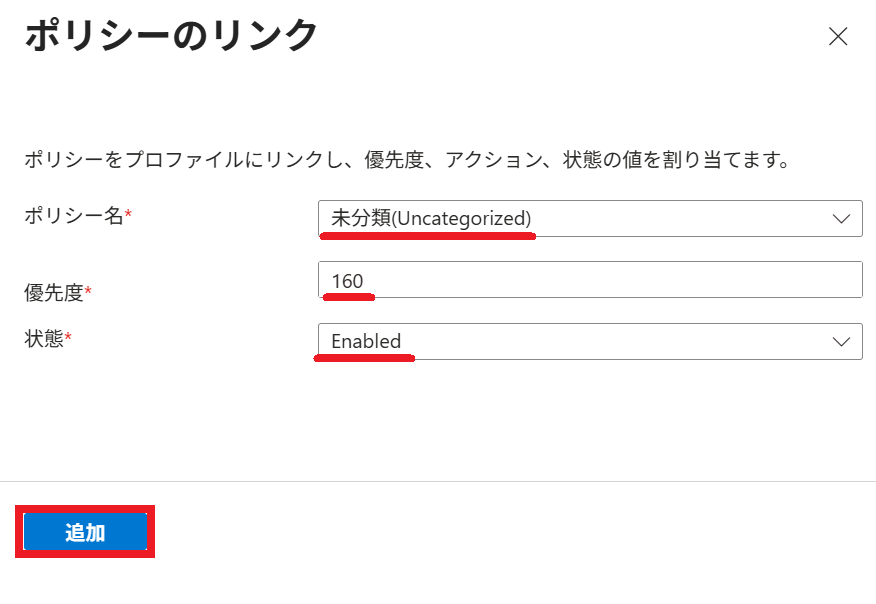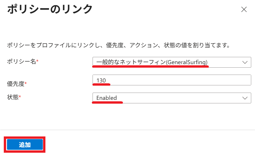 2.以下の通り リンクポリシー を選択すると、プロファイル に割り当てられている ポリシー が一覧表示されます。
