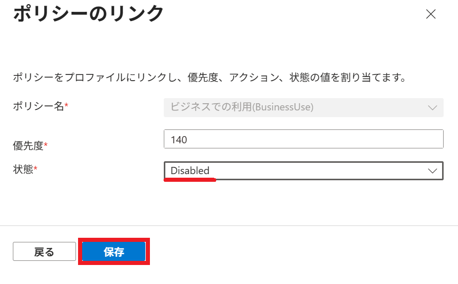 以下の例では、ビジネスでの利用 を Disable にしています。