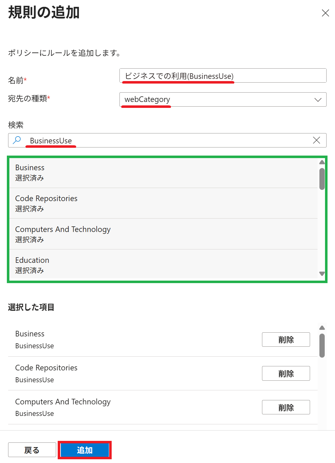 これで、再度テストを行い ビジネスでの利用 に該当するサイトが表示されるようになったことを確認できれば OK です。