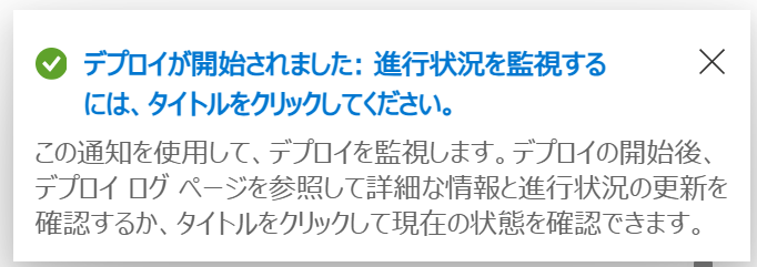 このあと、デプロイログ で、状態が デプロイ成功 になるまで、待ちます。