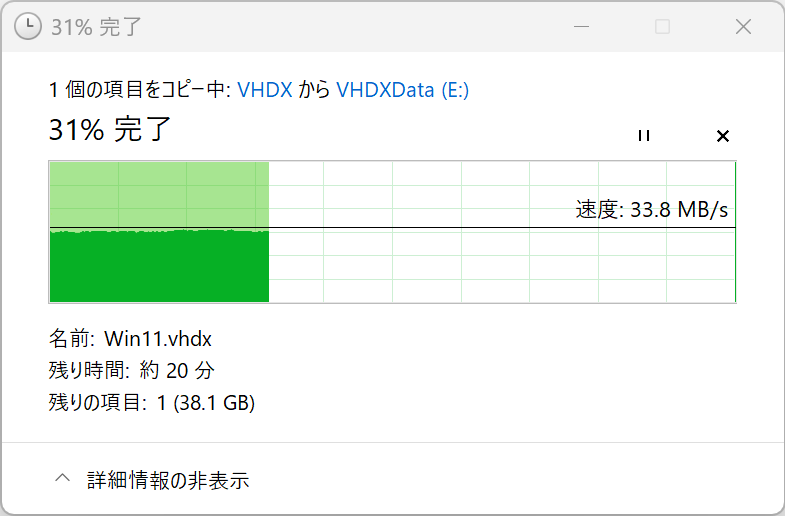 11.このタイミングで、VHDX ファイルをコピーして バックアップしておくと良いです。