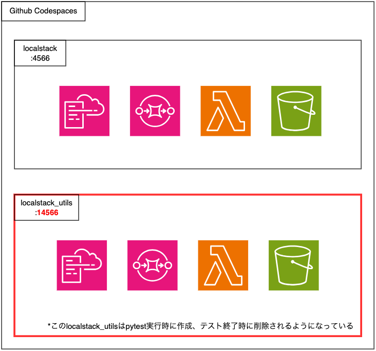 また単体テストで使う LocalStack は、単体テストを実行するたびに初期化する必要があり、イミュータブルであるべきです。