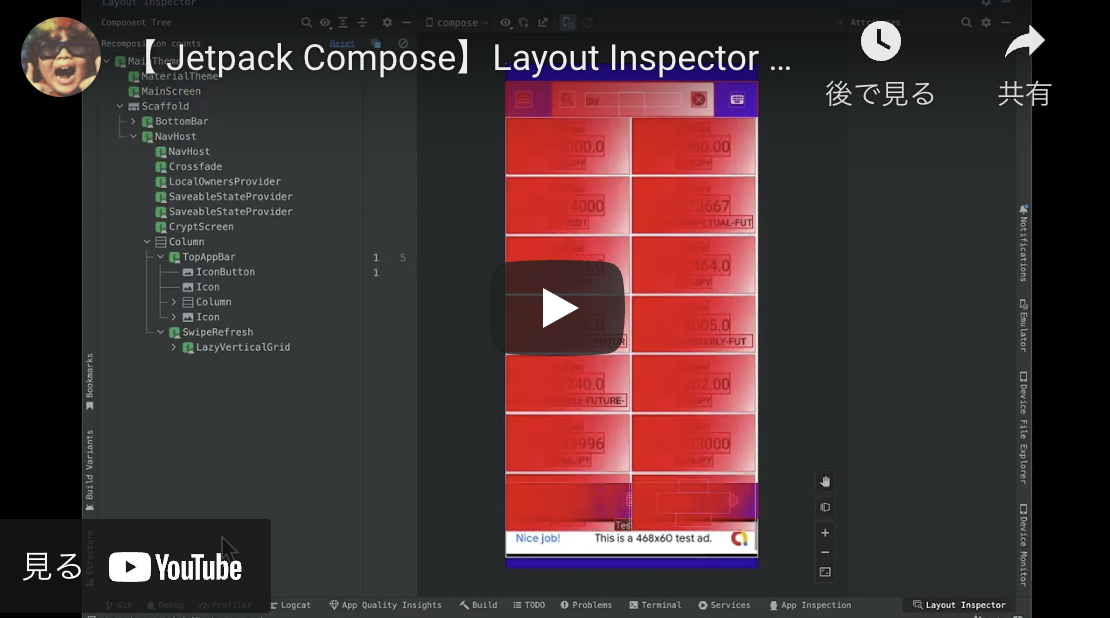 👉 【Jetpack Compose】「Layout Inspector Recomposition counts」で re-compose 回数を確認する