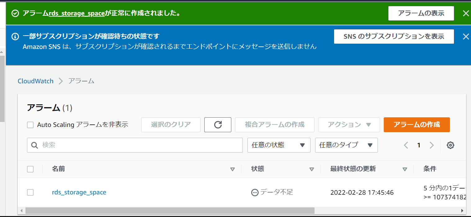 最近CloudWatachでRDSのストレージ残り空き容量を監視したいことがあったので、手順を残します。