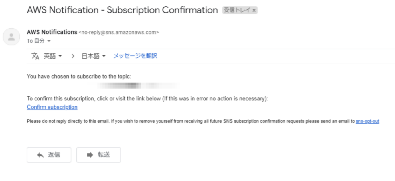 アラートを作成してしばらくするとAWSから以下のような確認メールが届きます。