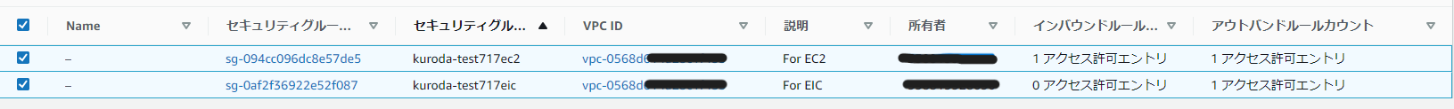 | インバウンド | TCP | 22 | EICセキュリティグループ |