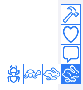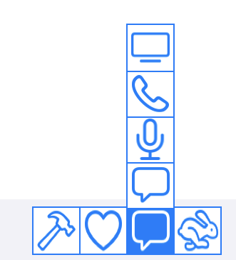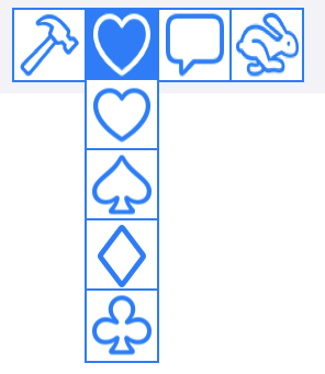 実際に選択状態にあるツールは常に一つです。ユーザーはまずカテゴリーアイコンを長押しするとサブアイテムのアイコンがポップアップします。ポップアップする向きはプロパティで指定する事ができます。目的のサブアイテムへ指を動かして離すと、そのアイテムを選択した事になります。