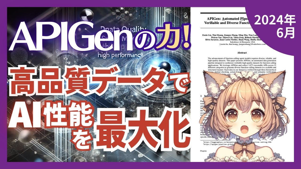 2023年以降、LLMの限界を克服するため、外部知識やツールを活用する手法が注目されています。RAG技術により、モデルは外部の知識ベースから関連情報を検索し、より正確で最新の情報に基づいた回答が可能になりました。 また、GPT-4のプラグイン機能やHuggingGPT (2023)のようなフレームワークにより、LLMは外部のAPIやツールと連携し、リアルタイムの情報取得や特定のタスク実行ができるようになりました。ToolFormer (2023) のような手法では、モデル自体が外部ツールの使用方法を学習したり、APIGen (2024)といったAPIを訓練するデータセットが充実化してきています。これらの技術により、LLMの適用範囲が大幅に拡大し、より実用的で信頼性の高いAIシステムの開発が可能になっています。