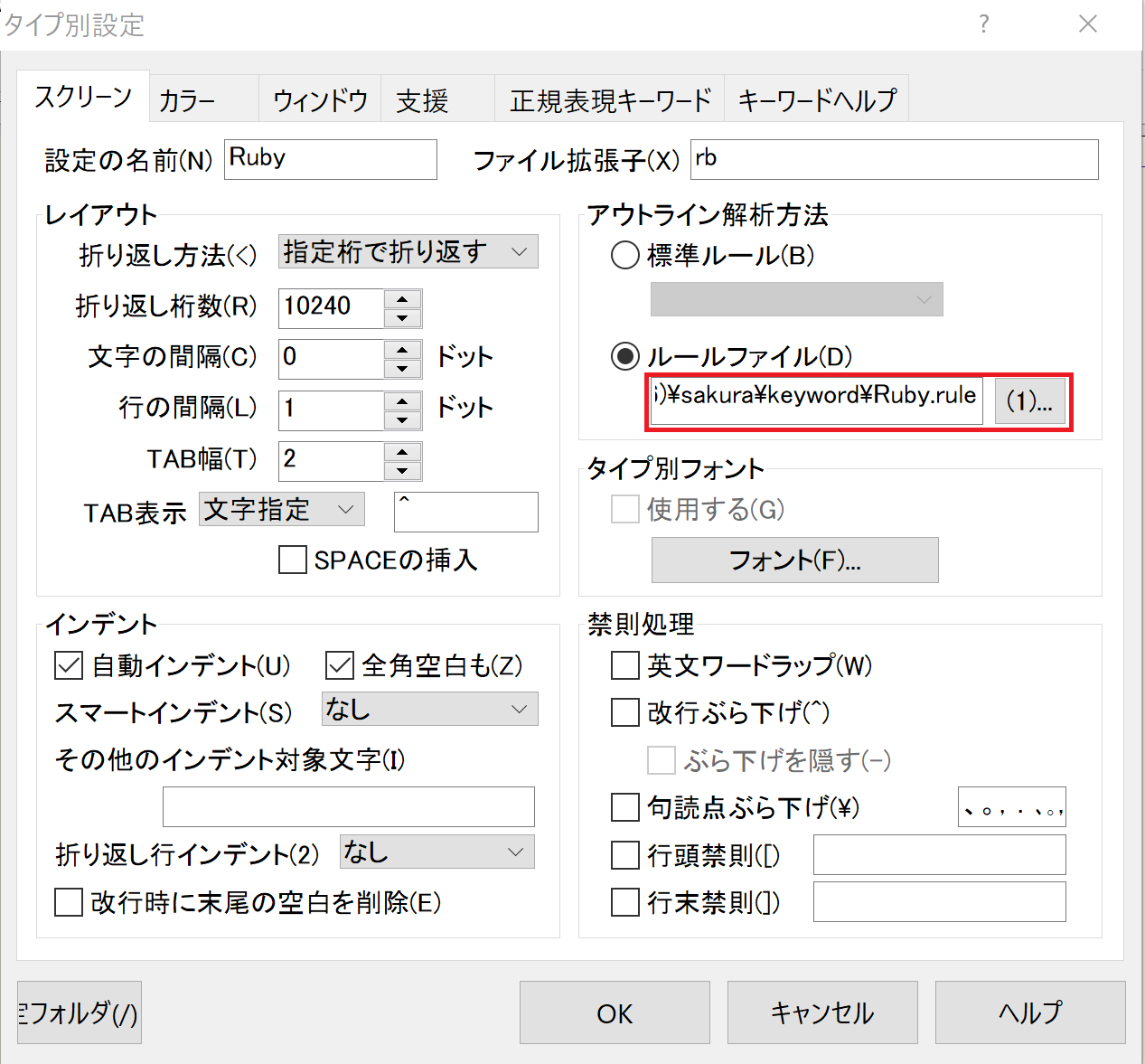 「(1)…」の隣の四角に「C:\Program Files (x86)\sakura\keyword\Ruby.rule」なっているのを確認!!