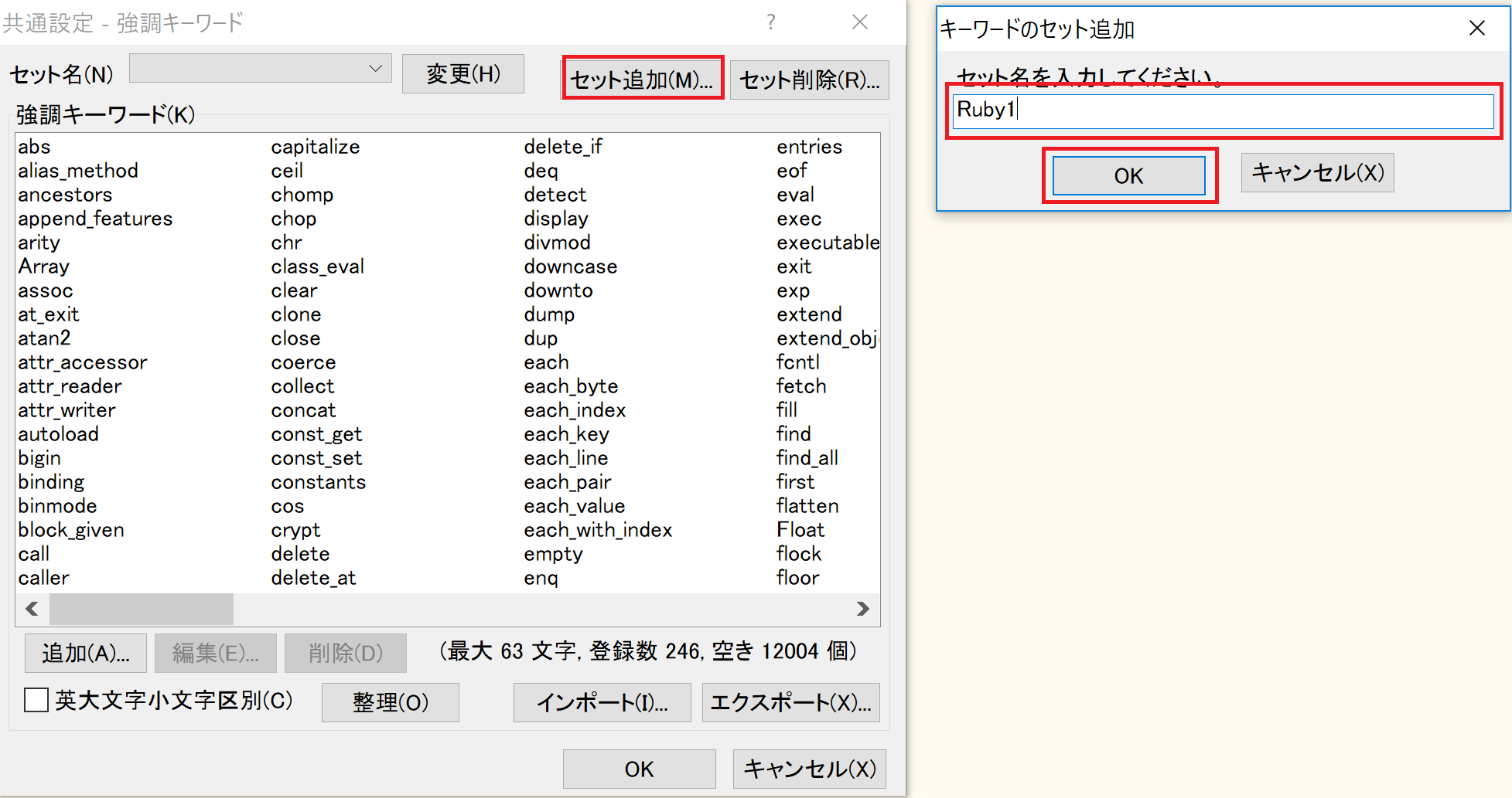 「セット追加」を押下して、「セット名」を**「Ruby1」にしてOKなのさ。