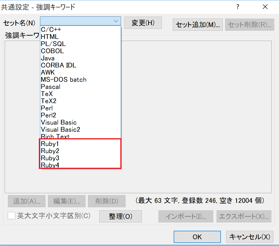 そして、「強調キーワード1」は「Ruby1」と各選択し「OK」を押下するのさ。