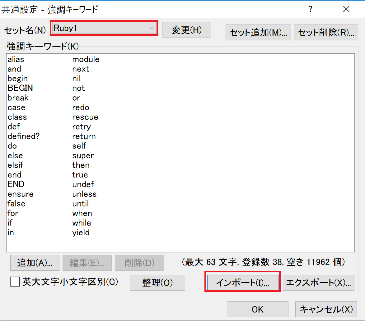 そして、**「【No.1】 サクラエディタでRubyの設定をしてみた(=゚ω゚)b」の「【確認】設定の前に」**で行った「C:\Program Files (x86)\sakura\keyword」の中にある「Ruby.rkw」を選択します。