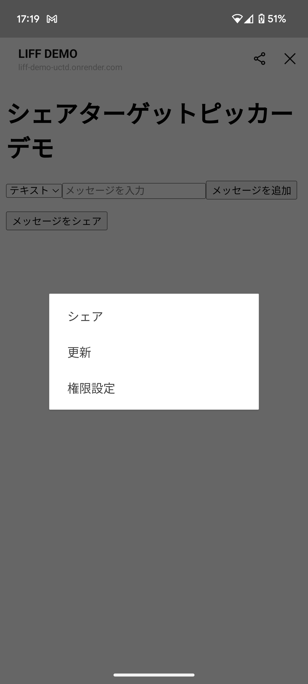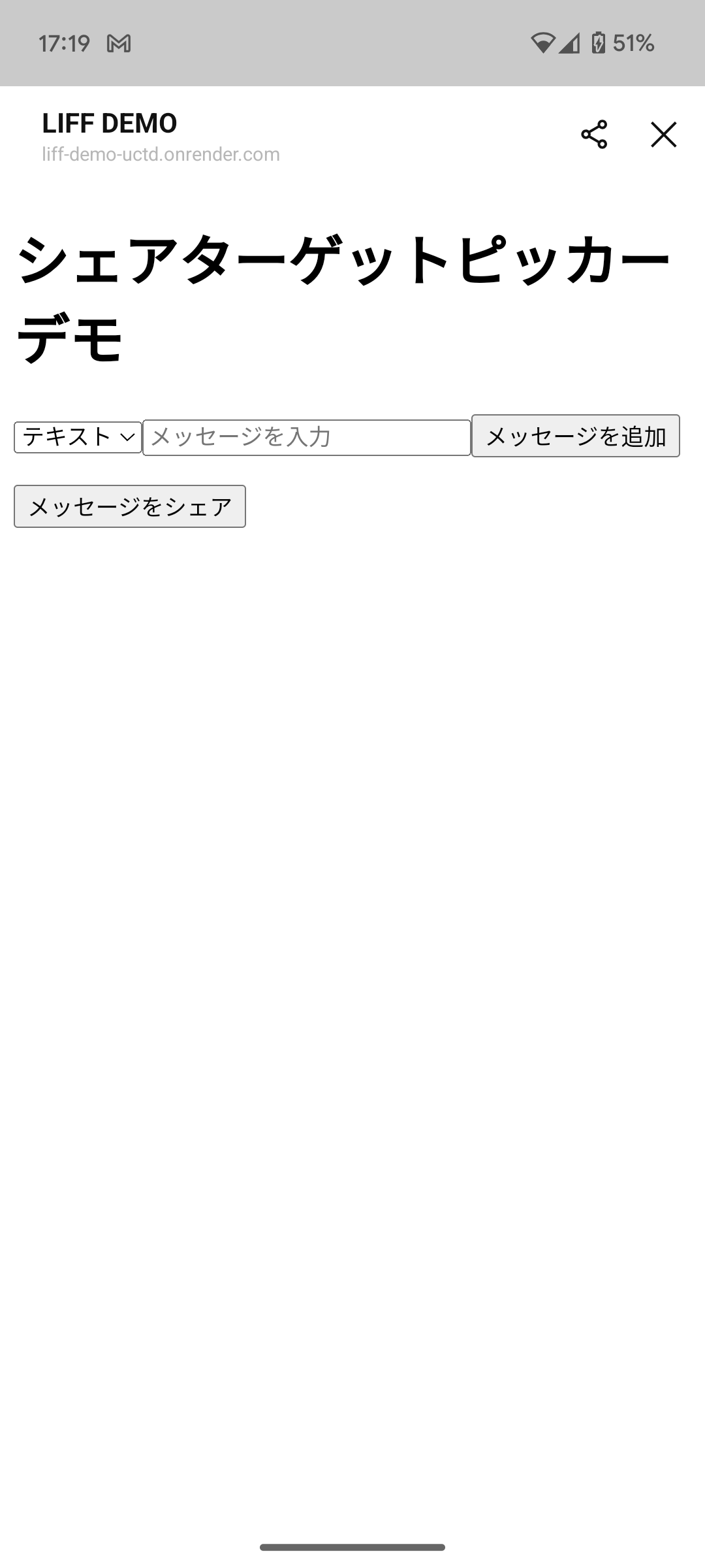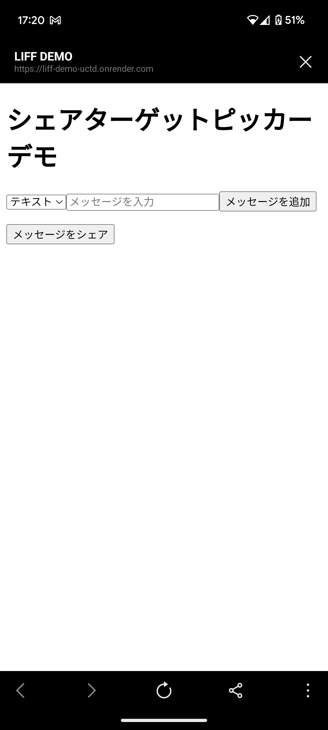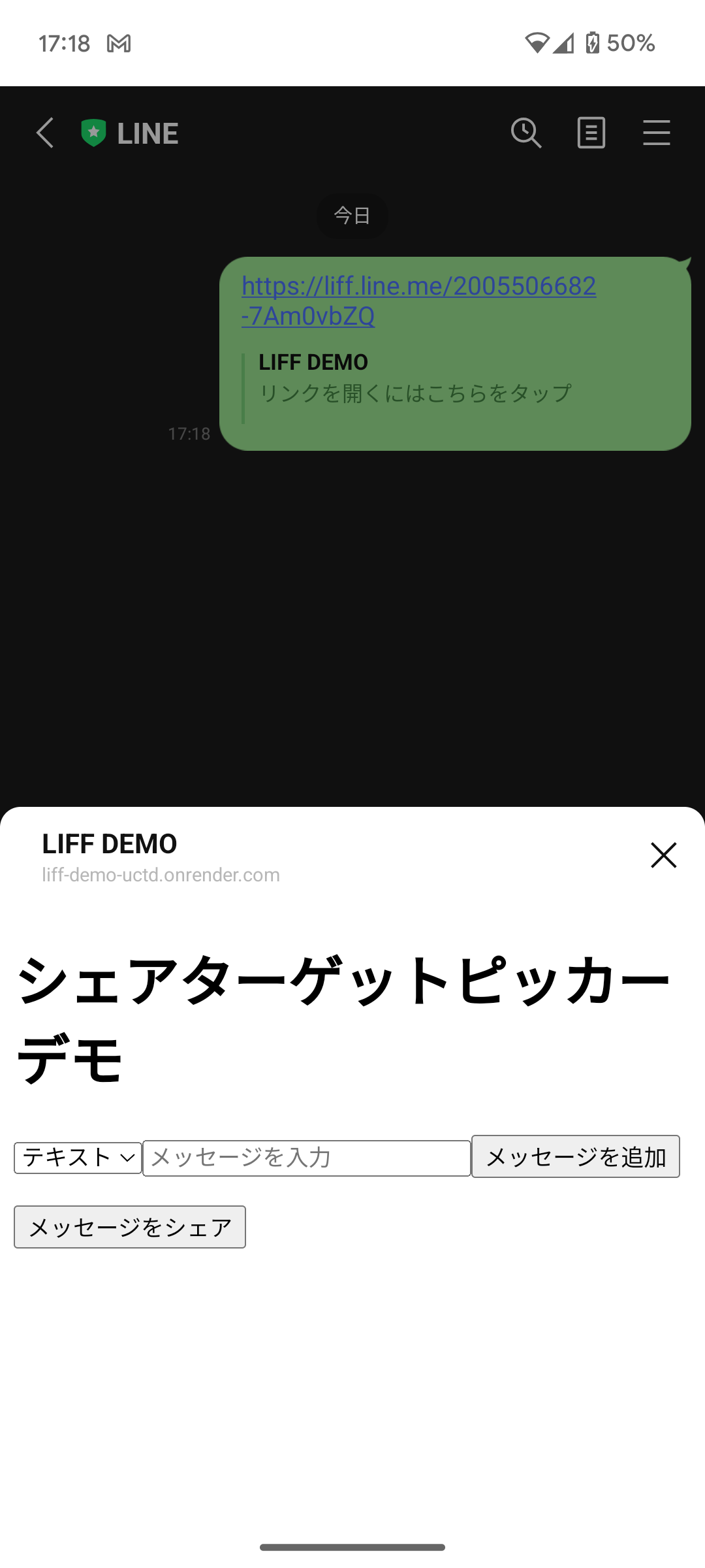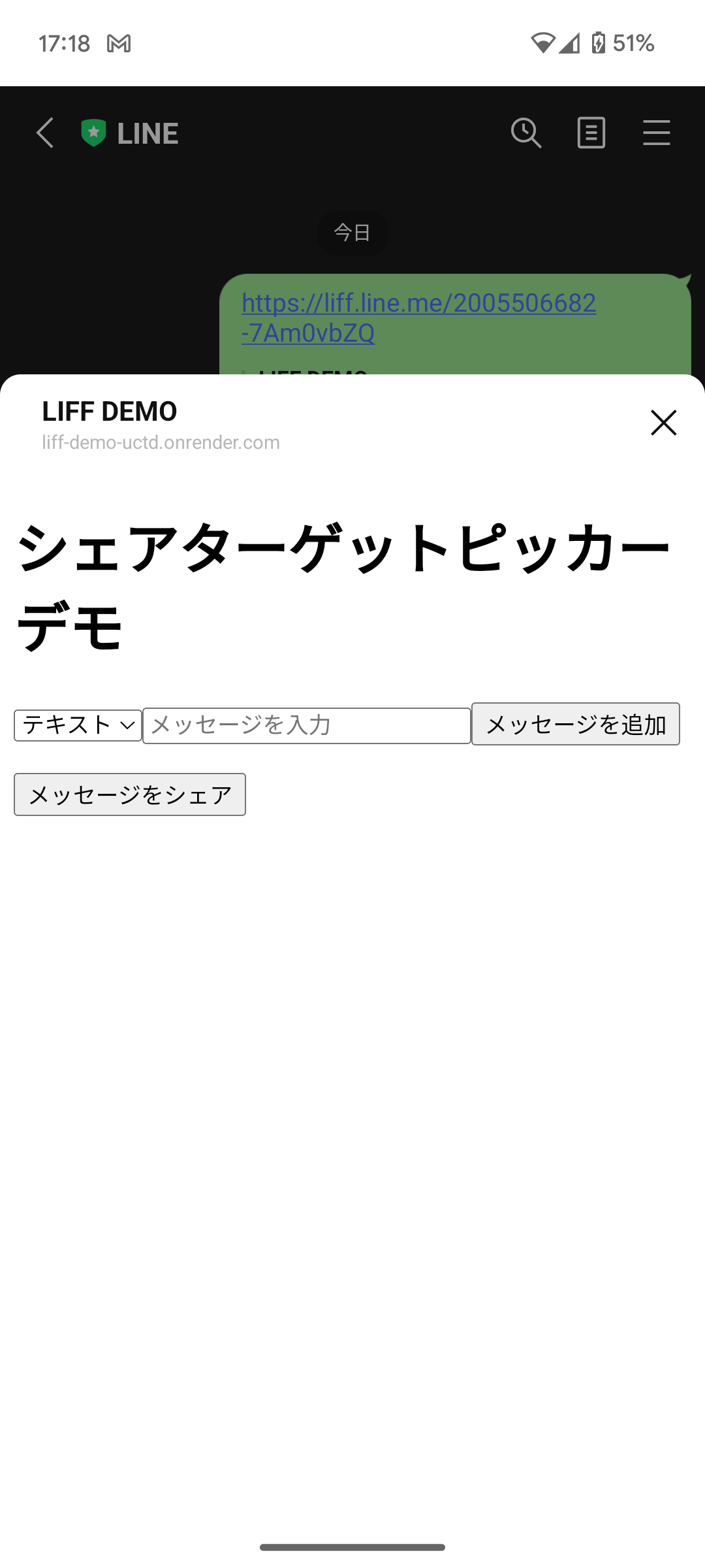 鋭い方は、「LIFFアプリなのにどうやってLINE内ブラウザで表示させたか」を疑問に思うかもしれません。それはおまけにて触れています。