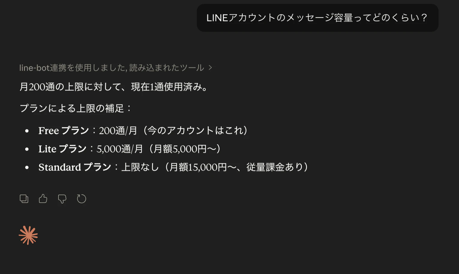 - LINE公式アカウントのメッセージ容量と消費量を取得