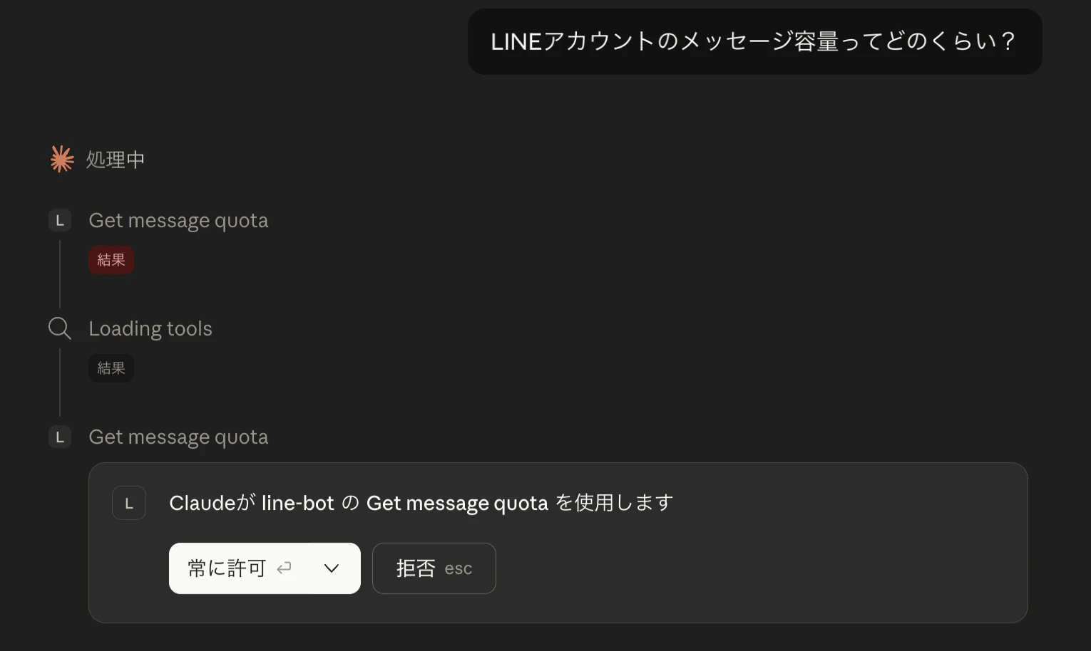 以上の設定が完了したら、Claude Desktopを一度終了し、再度立ち上げてください。