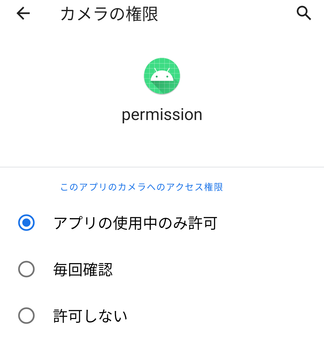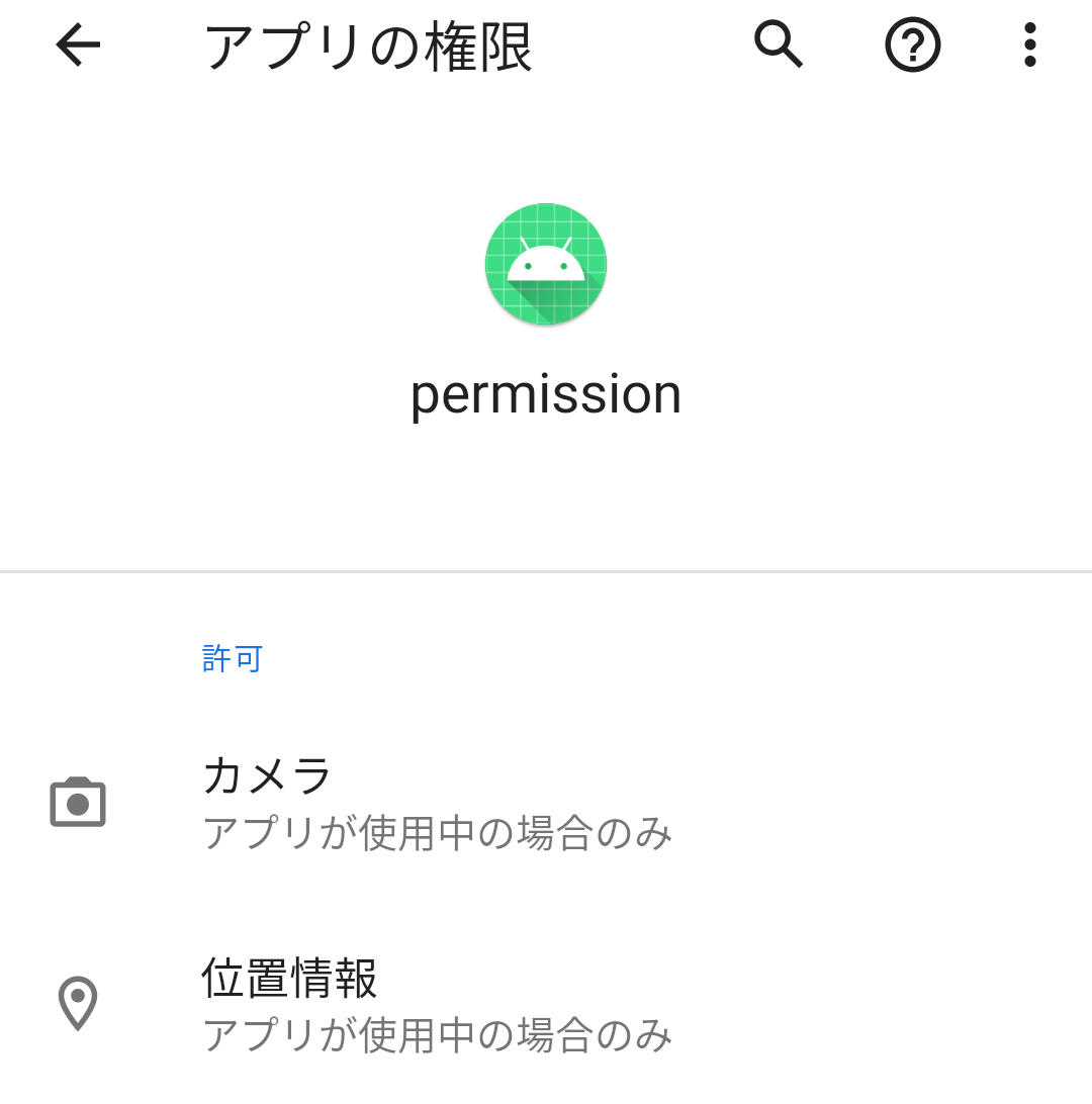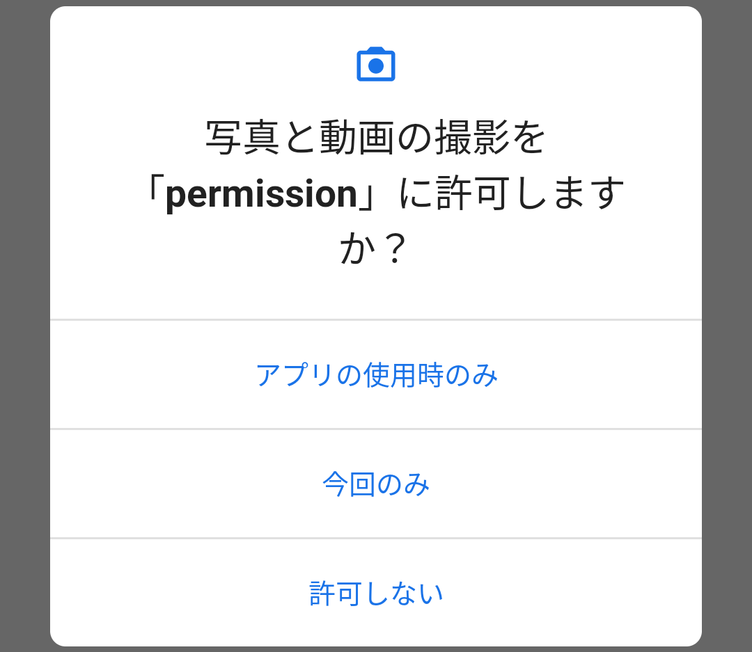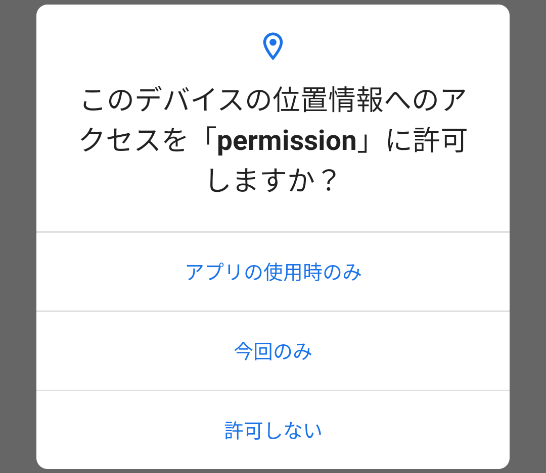 アプリを実行すると、このようにパーミッションを許可/拒否するダイアログがパーミッション毎に出ます。