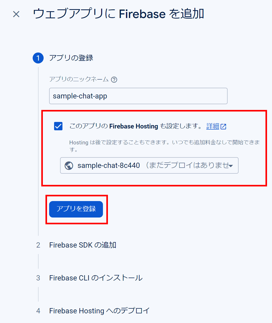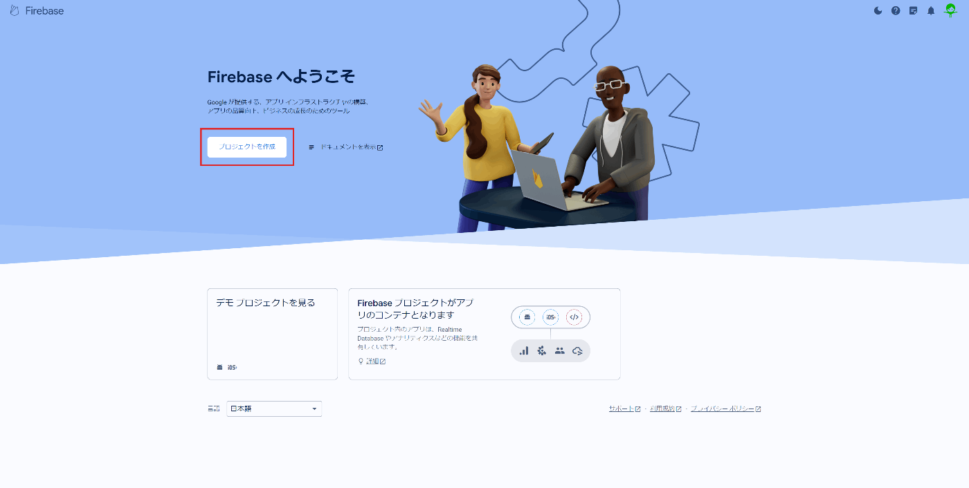 - firebase上にプロジェクトを作成