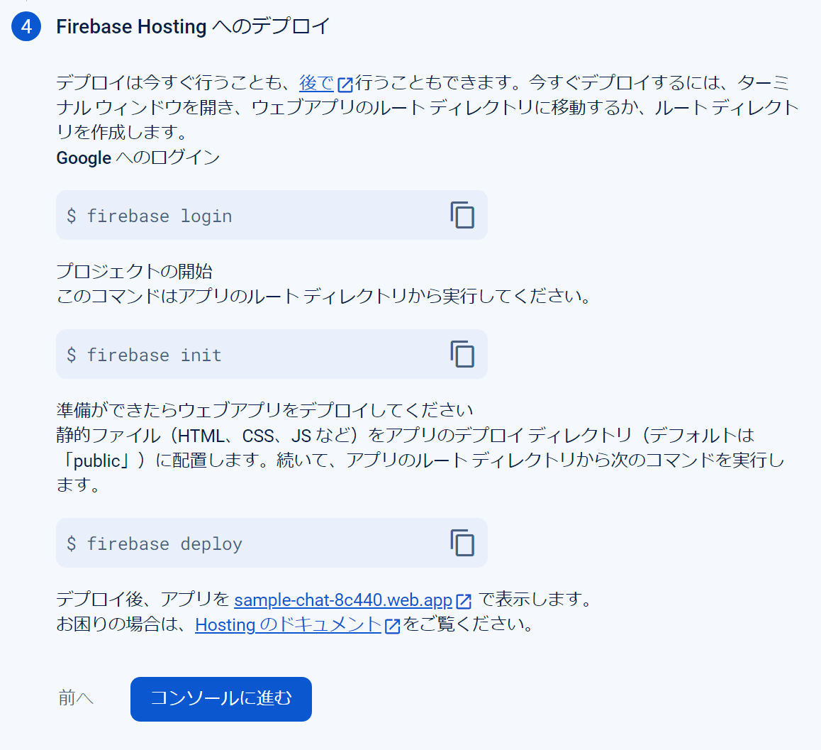 firebase hostingへデプロイ