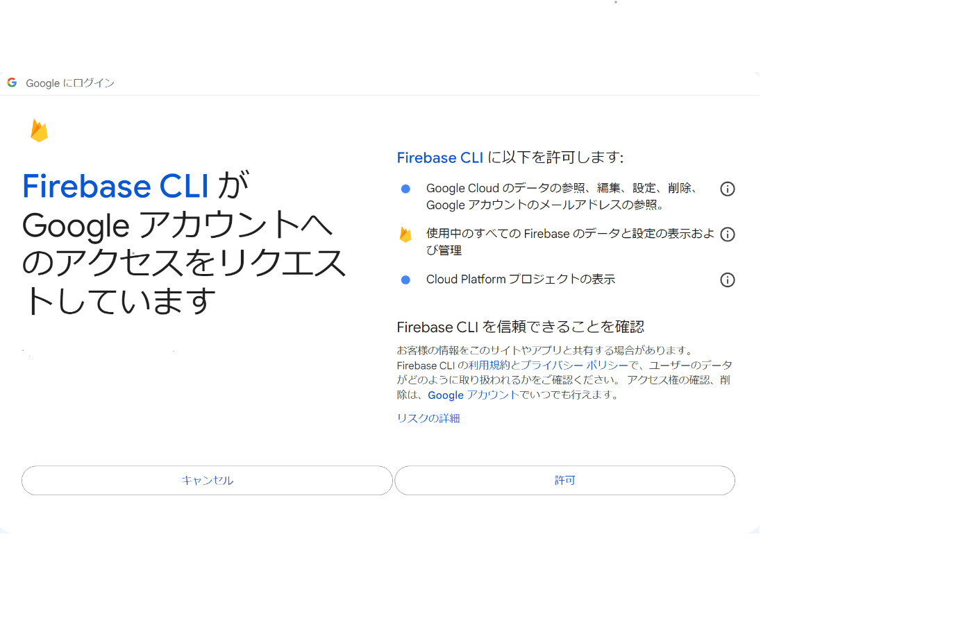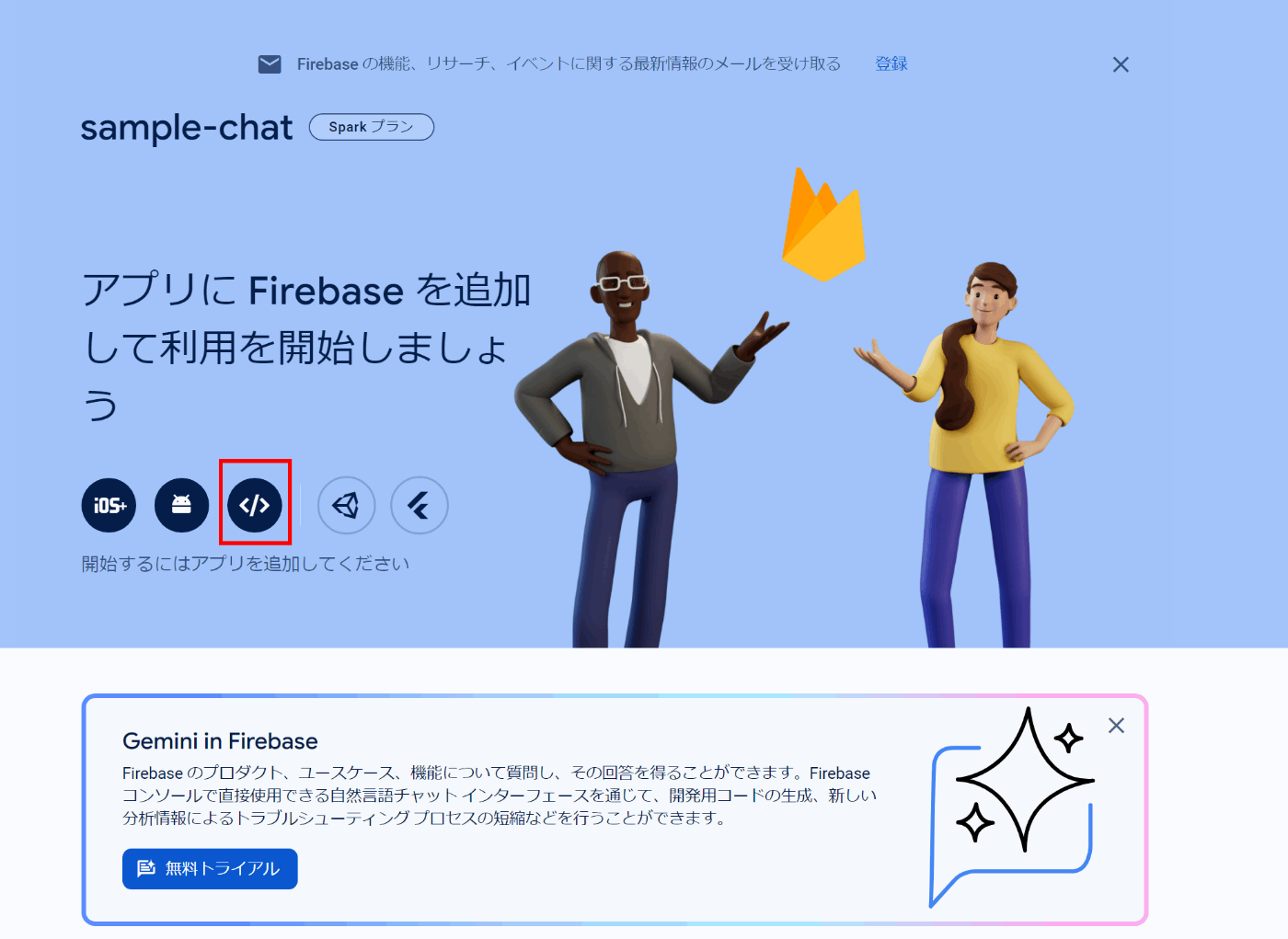 意訳)Firebaseプロジェクトとして初期化しようとしてけど準備はいい?